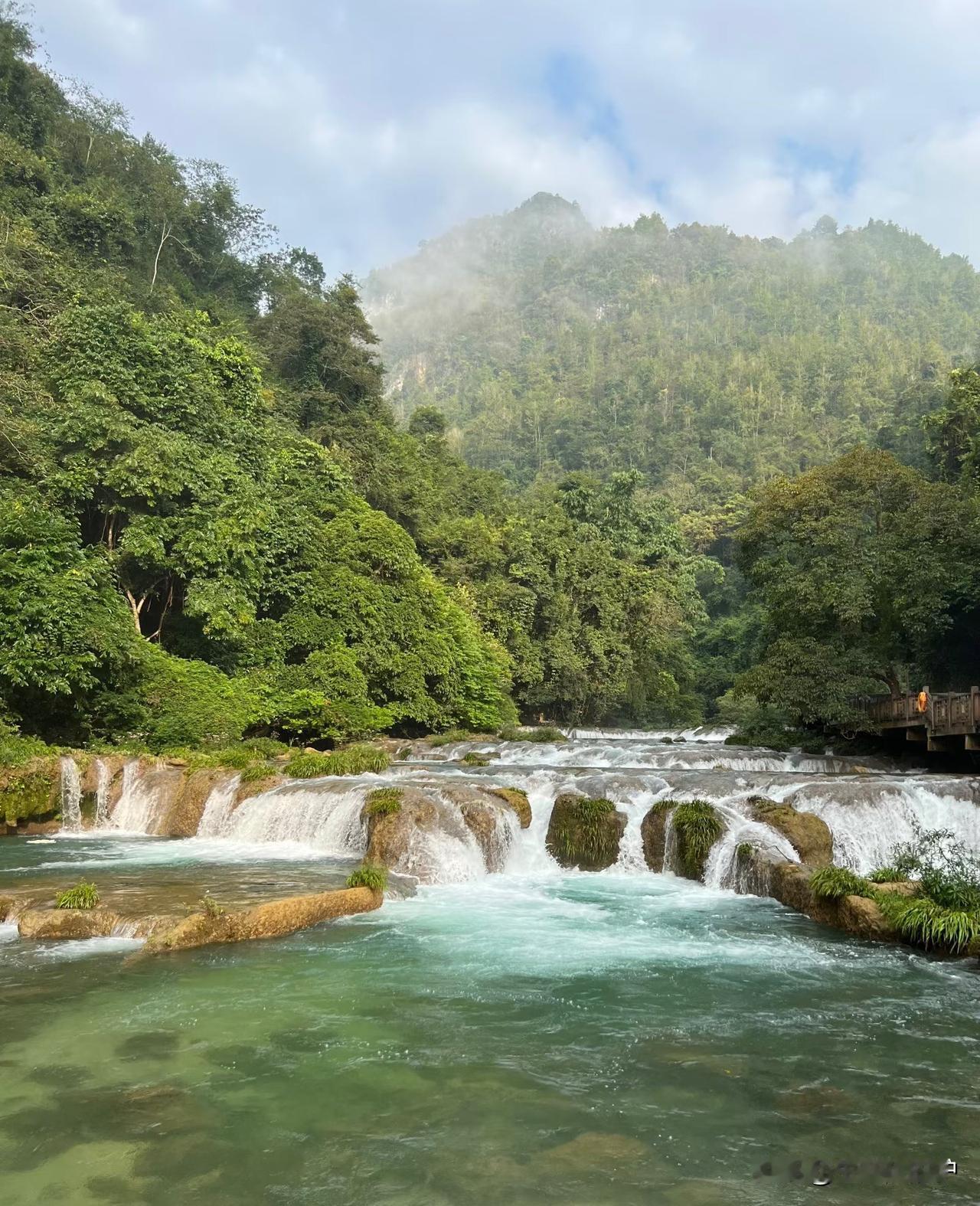 谁说带老人逛大小七孔要耗一整天?亲测“东进东出”,不玩鸳鸯湖划船、漂流等额外项目,连几位70+长辈都能轻松拿下,半天就逛遍核心美景! 我们8点准时从东门入园,恰逢阴天,远处山间裹着一层薄雾,烟雾缭绕的模样像极了水墨画卷,刚进园就被戳中好感。 1. 先坐景区车直达小七孔古桥,拍几组氛围感照片后,就往石上森林方向走——这一段我敢说是小七孔的“颜值天花板”!虽说全程微微上坡,但栈道修得规整,几乎没有陡楼梯,老人走起来不费力。沿途瀑布奔涌、水流潺潺,一步一景全是大自然的动态灵韵,停停拍拍间,不知不觉就到了石上森林。 2. 从石上森林坐车去翠谷瀑布,这里能浅玩水(我们没玩,省了不少时间)。如果说前一段是“动态美”,那翠谷瀑布就是妥妥的“静态油画”,景点不大,沿着步道逛一圈、拍几张照,十几分钟就能搞定。因为不玩鸳鸯湖划船,直接跳过,直奔卧龙潭。 3. 卧龙潭是小七孔的“收尾颜值担当”,不玩漂流的话,在潭边拍拍照就够惊艳,之后回中转站坐车,往下一站大七孔去。 4. 重点提醒!千万别为赶行程放弃大七孔!建议直接坐船进景区,再步行去天生桥——很多人忙着玩划船、漂流,反倒错过这片宝藏。听说晴天下午来,阳光透过天生桥的孔洞,会形成“黄金孔洞”的绝景,可惜我们下半天有别的安排没赶上,太遗憾了! 全程下来,小七孔1点左右就逛完了,直奔东门的“板吉大拇指牛肉河粉”,一定要吃!薄荷叶随便加,裹着鲜美的牛肉汤入口,香到跺脚,哪怕要排队也值得等! 其实小七孔没有黄果树瀑布的震撼,但它的灵秀、清幽是独一份的,无法复制。按这个路线走,不用赶时间、不费体力,不管是带老人还是想高效逛景,都能轻松get核心美,真心值得来!