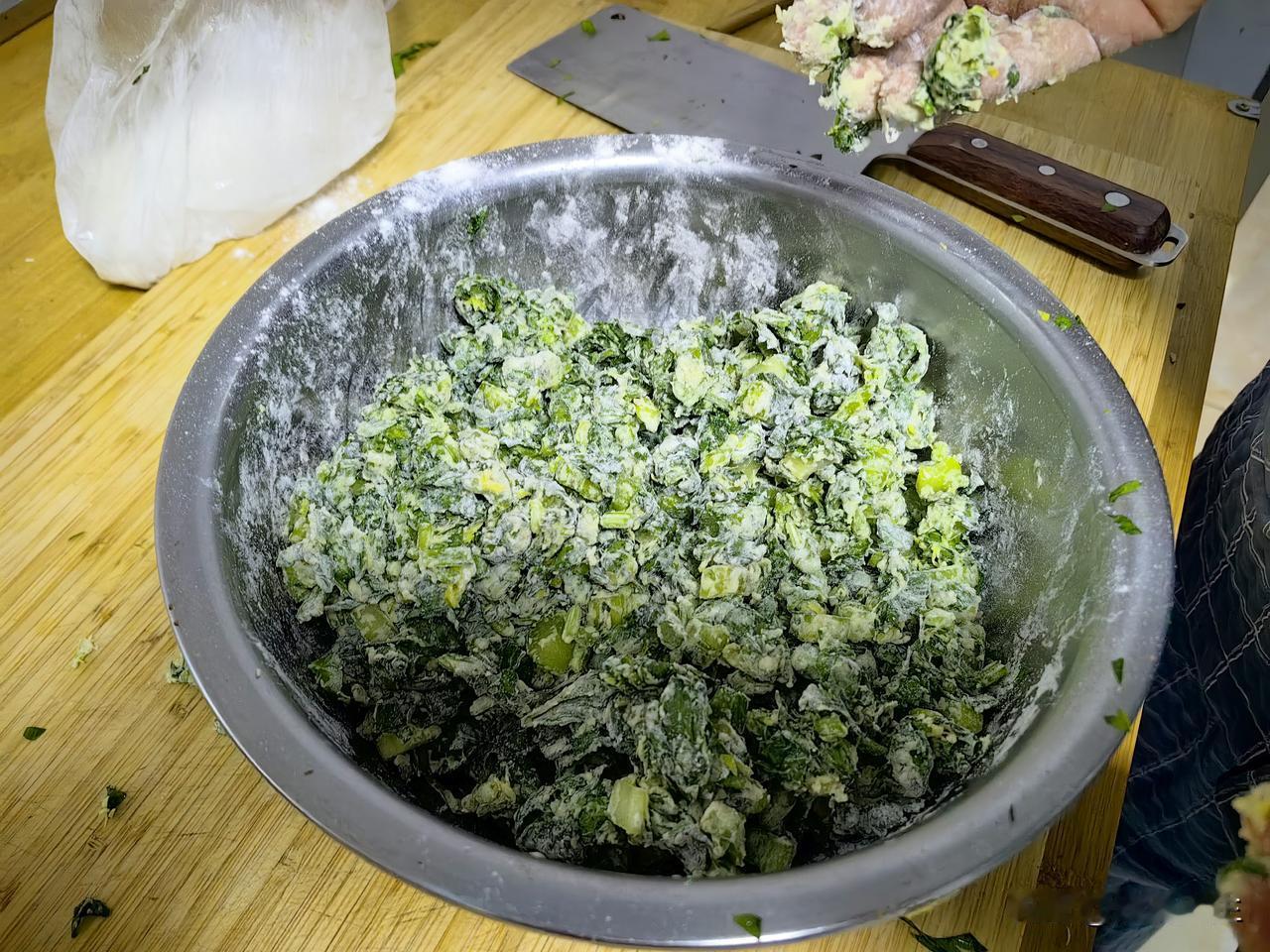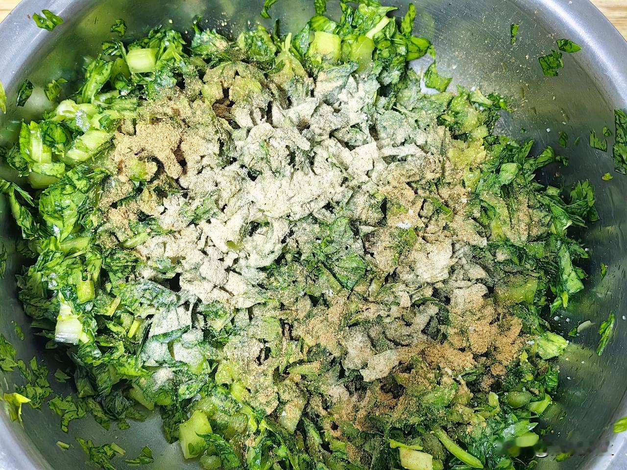 芹菜麦饭,自己动手做的,味道真是杠杠滴,鲜脆香甜,我认为芹菜最佳吃法“芹菜麦饭”。 做法:芹菜洗干净——切小丁——放少许盐,碱面——用手揉搓——倒面粉搅拌——上锅蒸20分钟——出锅倒盆里——放葱花,花椒面,味精—搅拌均匀——开吃。