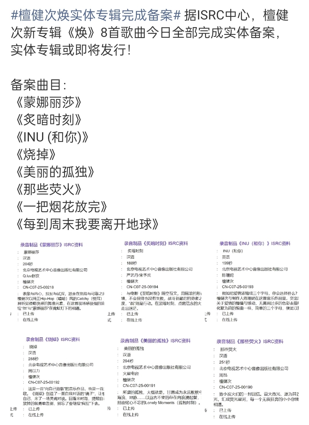 檀健次第二张实体专预告檀健次《焕》第二张实体专预告🈶共收录8首歌曲!10日13