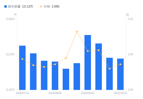 近一年(2024年9月30日至2025年9月30日),国安股份A股股东户数从12.11万户,增加至13.15万户,增幅8.51%,区间股价上涨1.54%。