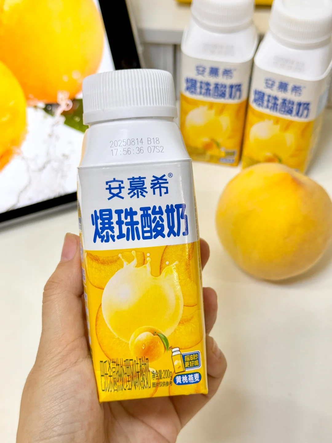 妈呀。。同事随手给我拿的安慕希黄桃燕麦爆珠酸奶