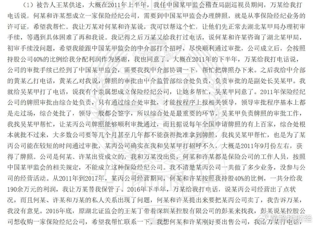 王某供述称,2011年的下半年,万某给我打电话说,公司的审批手续已经到了中国某甲监会,需要我找中介部协调一下,帮忙把牌照办下来。之后我给中介部的黄某乙打电话,黄某乙对我说,牌照的审批由中介监管部综合处负责,负责审批的是副处长吴某甲。我就给吴某甲打了电话,说我有个亲属想成立保险经纪公司,让她多帮忙,吴某甲同意了。2011年保险经纪公司的牌照审批由综合处负责,只有通过综合处审批,才能按程序上报相关领导,领导审批程序基本上都是走过场,综合处批了,领导一般都会签字,所以综合处是最重要的环节。吴某甲负责牌照的审批工作,我找吴某甲帮忙,让某丙公司牌照能够顺利审批通过,而且据说每年全国申请牌照的有上百家,综合处根本就批不过来,大多数公司要等几个月甚至几年都不能获得批准拿到牌照,我找吴某甲帮忙,也是为了某丙公司能在较短的时间通过审批,某丙公司确实在我和吴某甲打招呼不久,大概是2011年9月份左右,获得了牌照。
