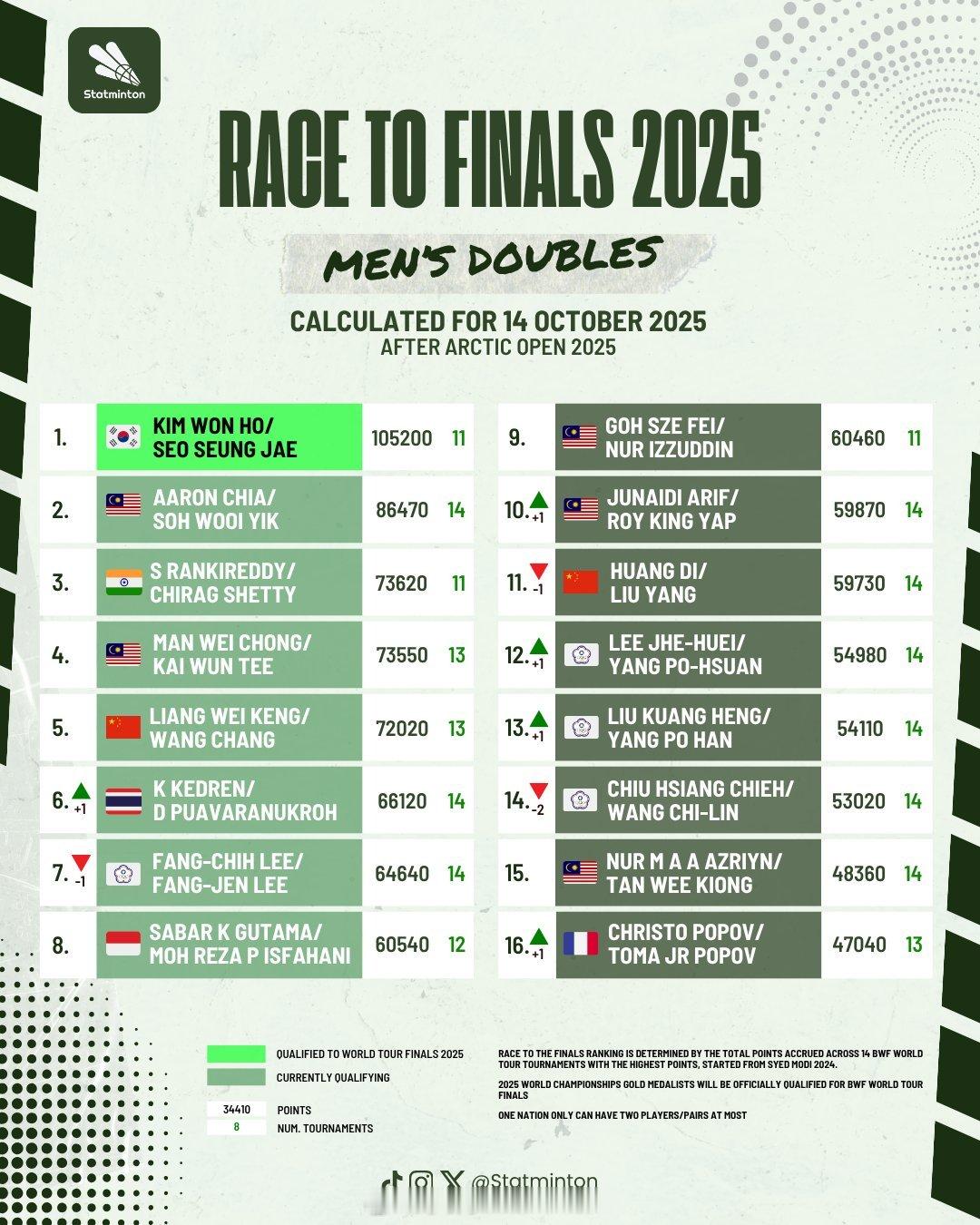 羽毛球🏸【男双】最新世界排名|总决赛积分排名