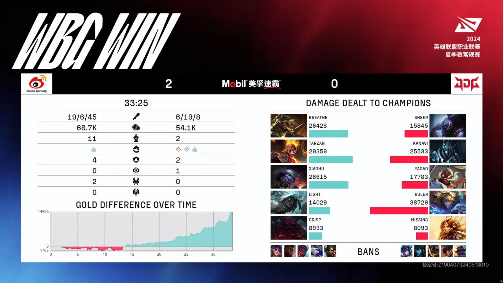 另外,WBG这一战也让我们意识到了一点,当全局BP在这个阶段不再使用的时候,各支队伍都要针对性的进行BP的博弈了,贴合版本依然是目前的最优解,JDG目前需要解决的问题依然有不少,我是不太怀疑他们能进季后赛的,但以那种姿势进季后赛,那可就不好说了。