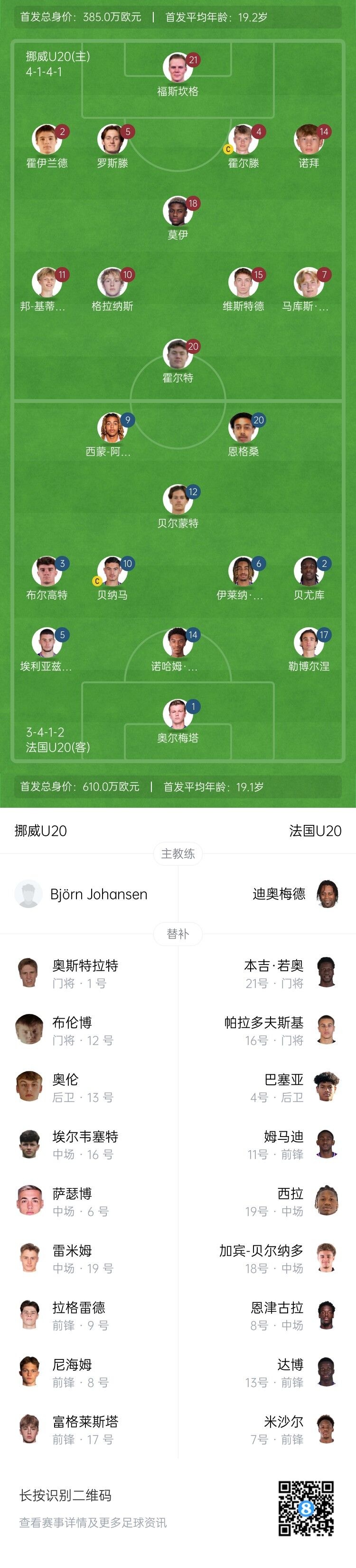 直播吧10月13日讯北京时间10月13日早上7:00,世青赛1/4决赛,挪威U20在普雷亚安查体育场对阵法国U20。上半场,西蒙-阿布雷梅开二度。半场战罢,挪威U20暂0-2法国U20。