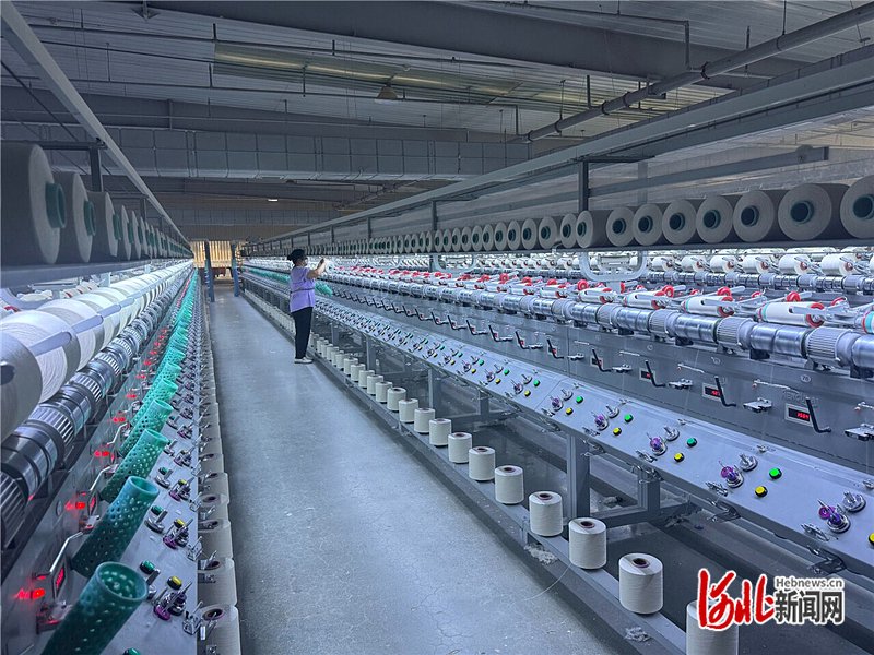 9月16日,圣翔染厂生产车间,工人进行纱线松筒。河北日报记者常方圆摄