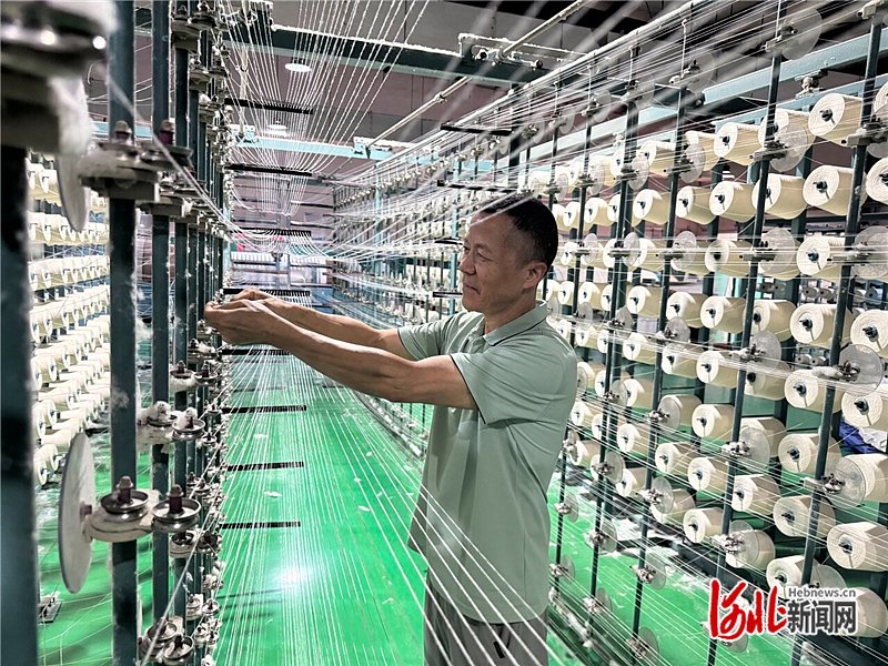 9月16日,河北柏立信家纺股份有限公司生产车间,工人进行纱线整经。河北日报记者常方圆摄