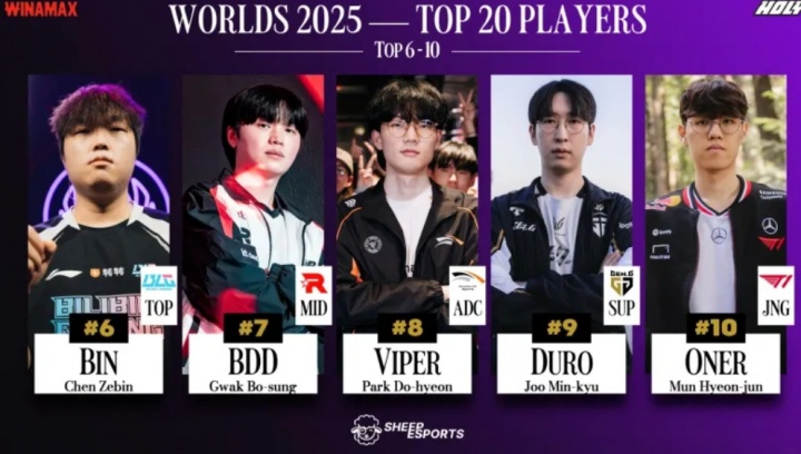 直播吧10月13日讯 今日国外电竞媒体SheepEsports发布「世界赛Top20选手榜单」,在今日公布了6-10的人选,具体如下: