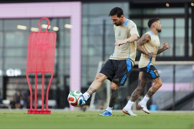 梅西已经回归阿根廷队,参加球队的训练,阿根廷队社媒晒出训练照片。