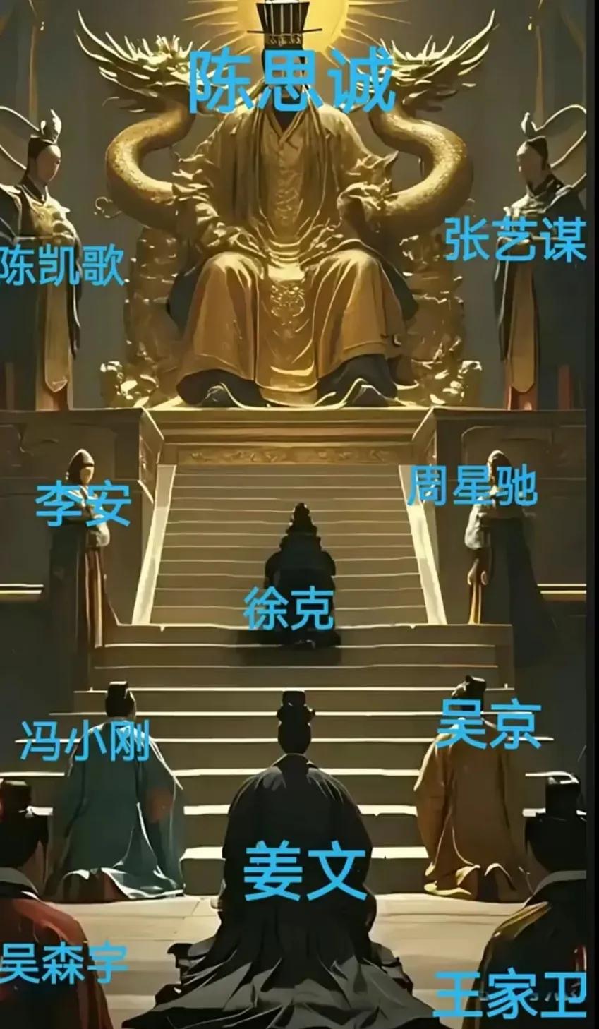 就问这是哪位大神拍的名,压根就不懂电影! 一张让人笑掉大牙的排名图片,这张图片几乎囊括了国内所有知名的导演。包括冯小刚,周星驰,李安等。但是不知道哪位大神排的名,实在有点让人笑掉大牙,这个排名我是不敢苟同。 图片中的陈思成居然排名第一,陈凯歌第二,吴京排在王家卫的前面,这三点也是我最不赞成的地方。不置可否,陈思成这几年凭借神探系列名声大噪,票房大卖的他收获满满。吴京也差不多,凭借战狼系列让他的人气大增。 但是个人认为:陈思成排在第一,何德何能,他应该与吴京一样,位列最后。 至于陈凯歌排名第二档,更是无稽之谈,除了《霸王别姬》,几乎没有能拿的出手的作品了。 如果让我拍:张艺谋当之无愧的第一档。周星驰、李安第二档,徐克、冯小刚、吴宇森、姜文、王家卫、陈凯歌这些老炮儿则是第三档。吴京、陈思成两位资历尚浅的年轻导演肯定排在末尾。