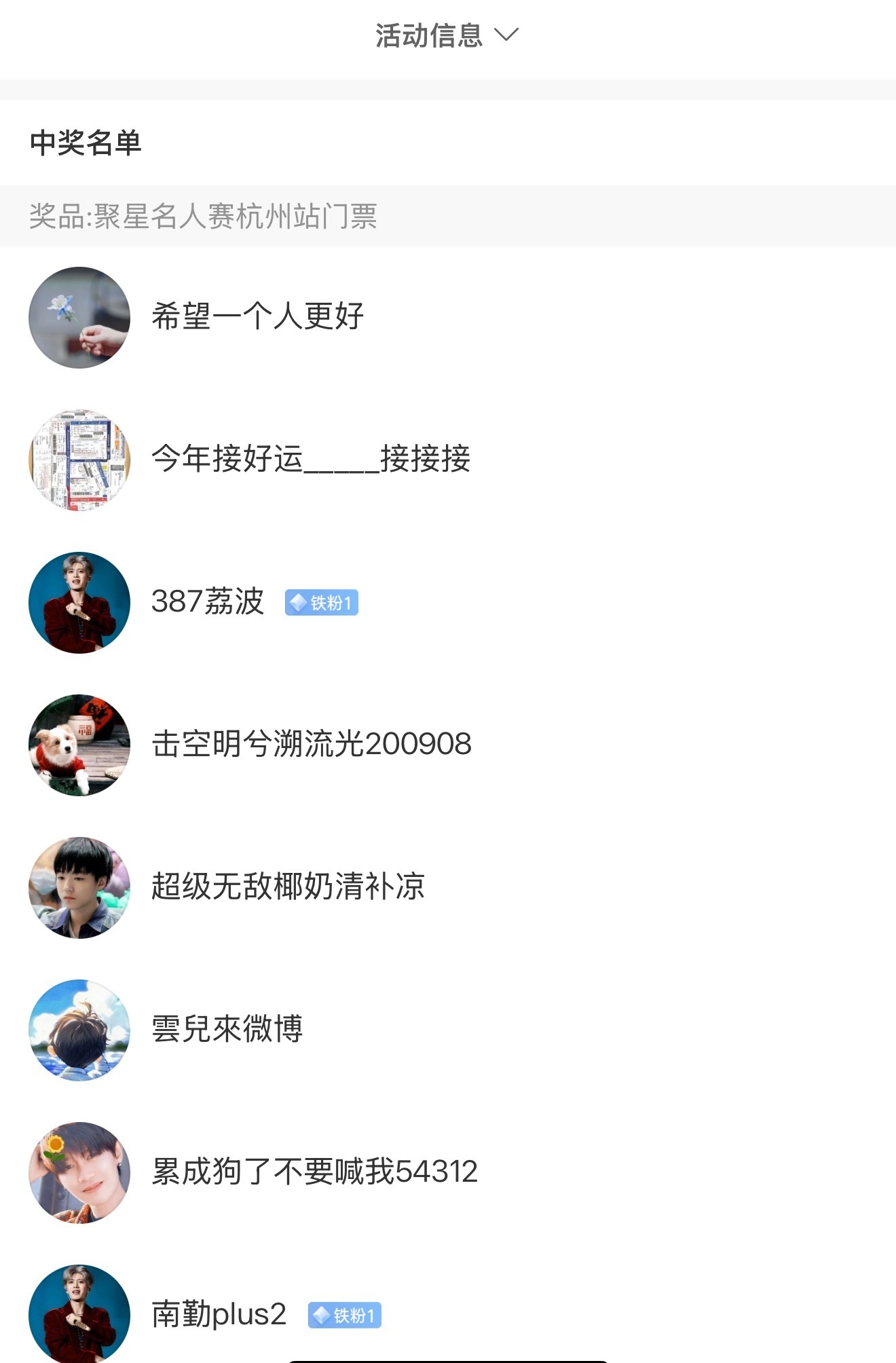 康师傅聚星名人赛抽门票,8张票,任嘉伦粉丝占了7张[偷笑]还得是活人啊!!
