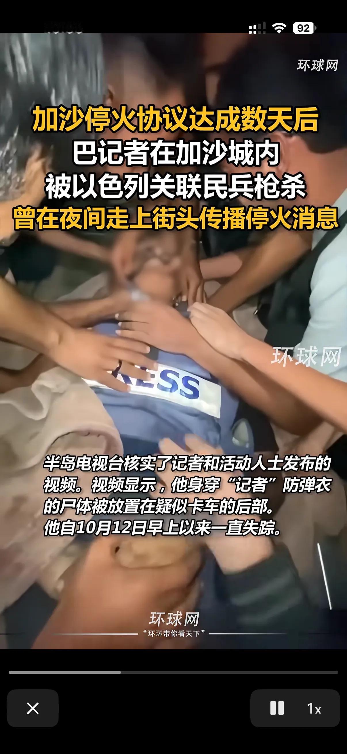那个在得到以色列和哈马斯停火后,连夜举着手机挨家挨户敲门告诉加沙进入停火的记者去世了,10.9号当天巴勒斯坦著名记者,萨利赫.阿尔贾法拉维,在得知以色列和巴勒斯坦将会停火后,因为当时加沙停电,加沙的居民还不知道这个消息,萨利赫就兴奋的举着手电挨家挨户的敲门告诉大家这个好消息,可惜这位记者不能亲自报道马上要召开的停火协议谈判了,就在10.12号加沙内政部称,阿尔贾法拉维在报道哈马斯和一支和以色列有关的民兵冲突中被民兵成员枪杀了! 现在加沙虽然大的武装战争结束了,但是小的武装冲突依然不断爆发,加沙的居民还是被战争所威胁生命!