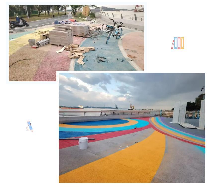 【蒲洲渔港路段又全面焕新升级】随着南沙推进滨海岸线贯通工程,蒲洲渔港路段步道也迎来升级。由于此前使用频率高,部分地面出现磨损,周边绿化也有些杂乱。为此,港湾街道在国庆前完成修复提升,让步道以更好状态融入整体海岸线。 本次路段不仅重新喷绘了彩虹过道,还大力开展绿化工作,种植了各类灌木绿植。另外还对破损地面进行了修补和加固。 值得注意的是,蒲洲渔港路段其实在一年前大湾区等会期间才刚刚进行了升级。