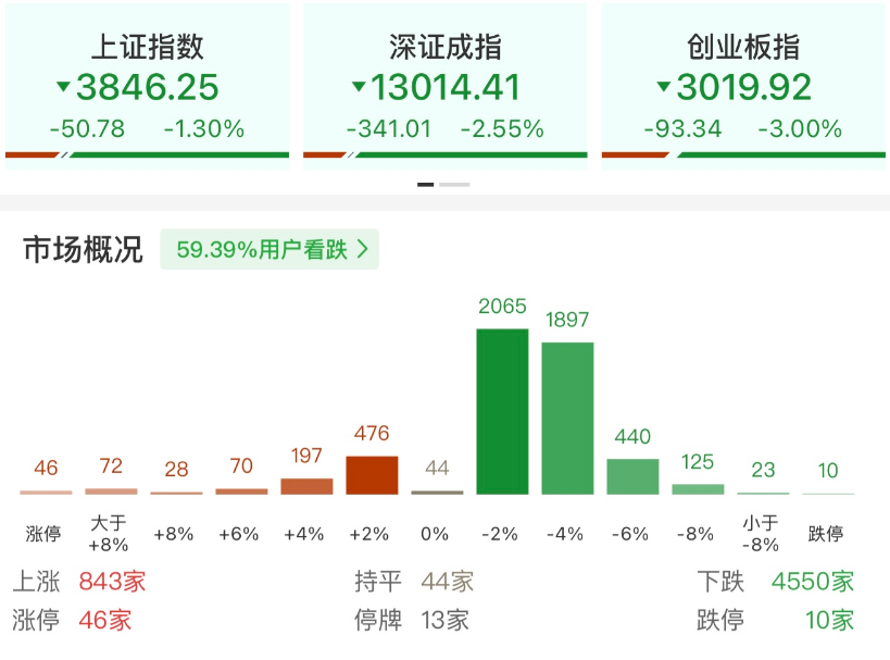 板块方面,稀土永磁、贵金属、半导体等板块涨幅居前,机器人、消费电子等板块跌幅居前。截至收盘,沪指跌1.30%,深成指跌2.56%,创业板指跌3%。