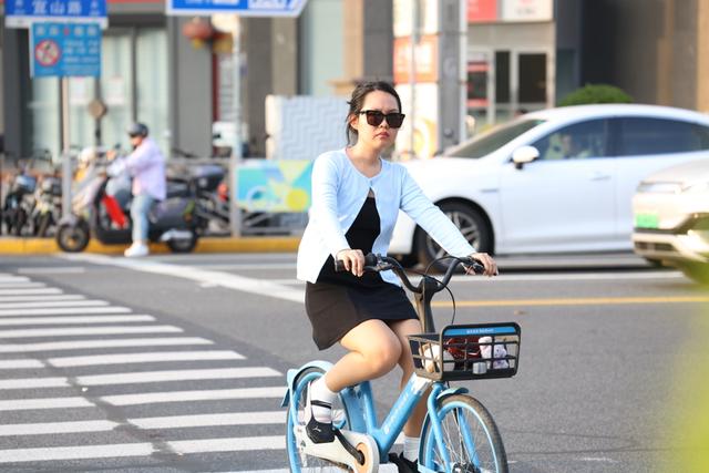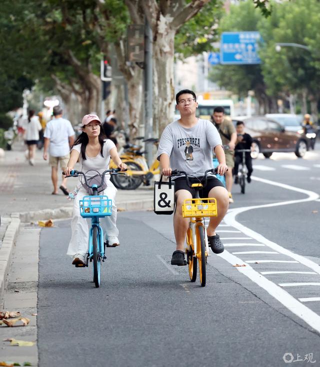 毕竟已过寒露时节,人们在树荫下骑行能感受到凉风习习。