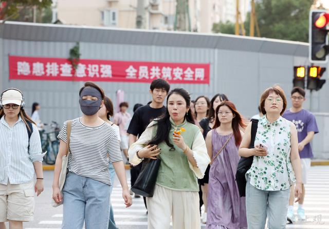 午后时分,闵行区宜山路上,行人佩戴防晒面罩。