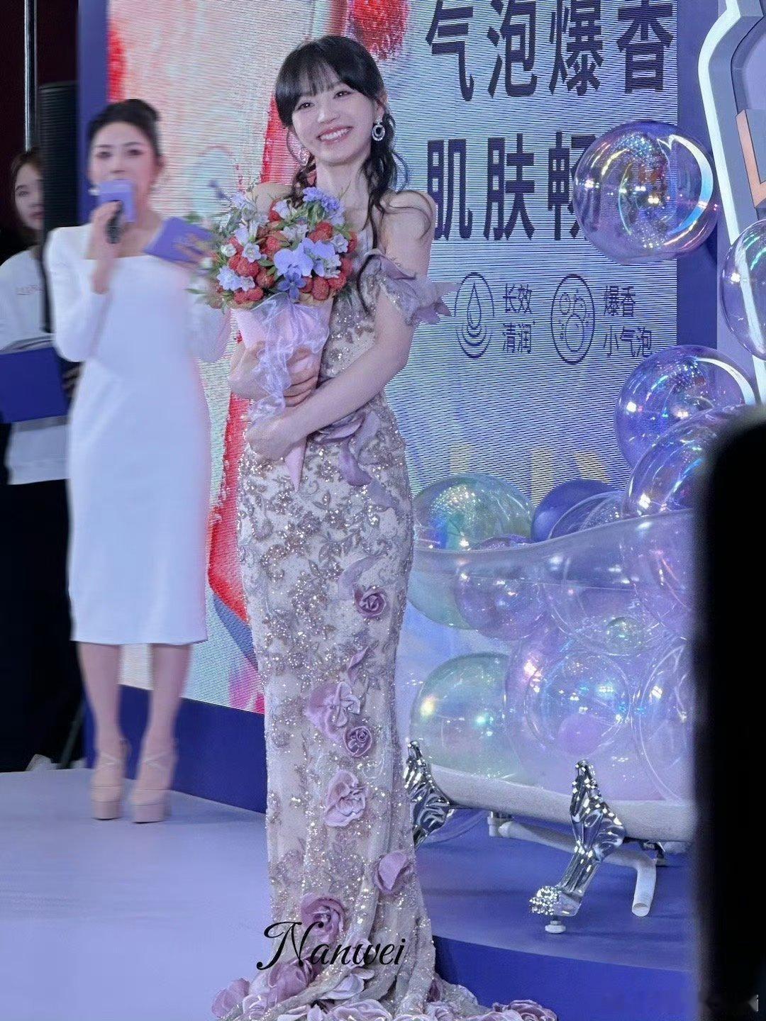田曦薇昨日线下活动造型,完全花仙子下凡[抱一抱][抱一抱]捧花wink比心一连招