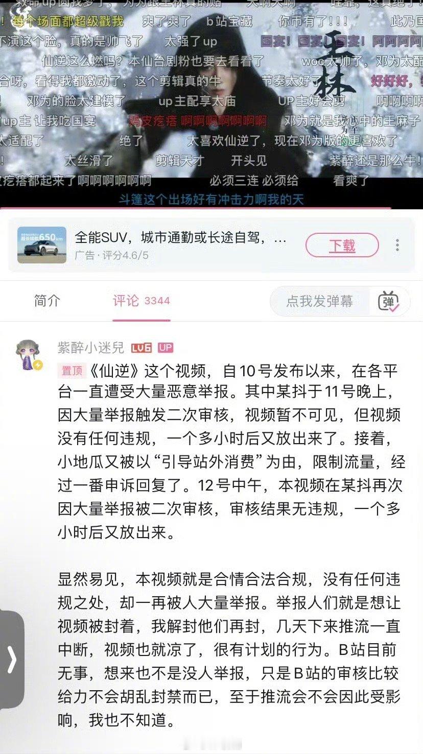 二创视频邓为版《仙逆》登上b站热门榜!!真的找不到这个视频的退出键,弹幕也全在说