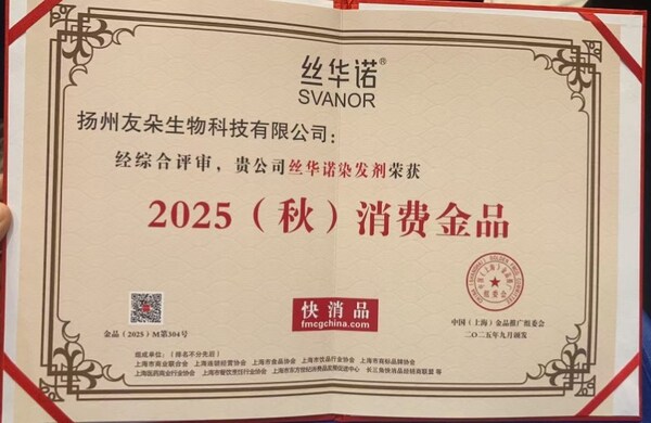 上海2025年10月13日/美通社/--以"展示金品风采,打响购物品牌"为主题的2025快消品对接论坛暨金品及领先零售商颁奖礼于9月26日在上海圆满落幕。本次活动由上海市商业联合会、东方快消品中心等机构联合主办,汇聚了百余家快消品品牌及零售企业高层代表。在备受行业和零售渠道瞩目的颁奖环节中,扬州友朵生物科技有限公司旗下"丝华诺"染发霜品牌,凭借其卓越的产品力、领先的科技含量与广泛的市场关注度获得"金品奖"。这一荣誉不仅彰显了品牌在染护发领域的强劲科研实力,本次活动也引发了新华社、中新社、解放日报上观新闻、劳动报、中国商报等主流媒体的高度关注与集中报道,进一步印证东方快消品"金品奖"瞩目的行业高关注度,丝华诺染发霜作为银发经济背景下民族品牌崛起的公信力与影响力备受瞩目。