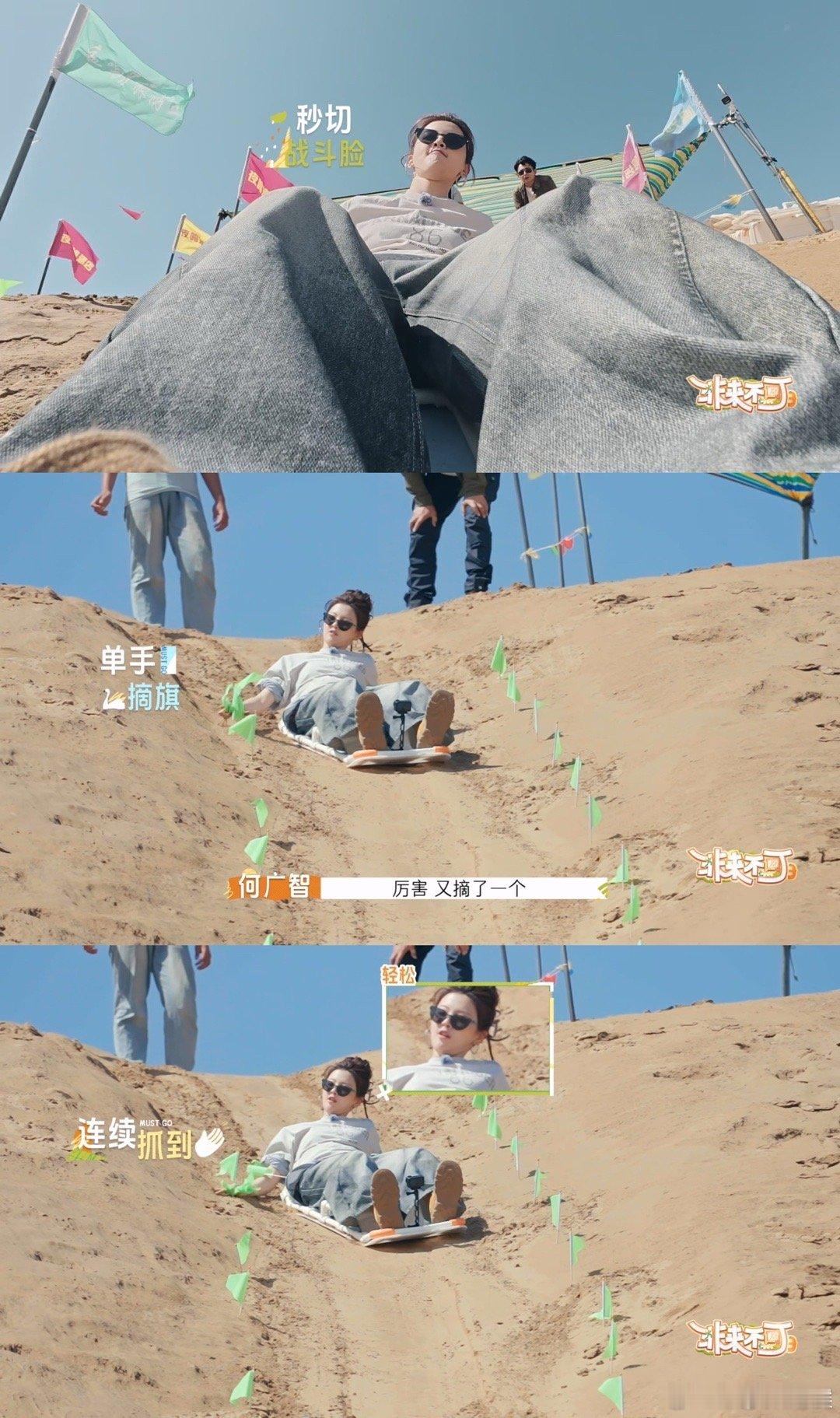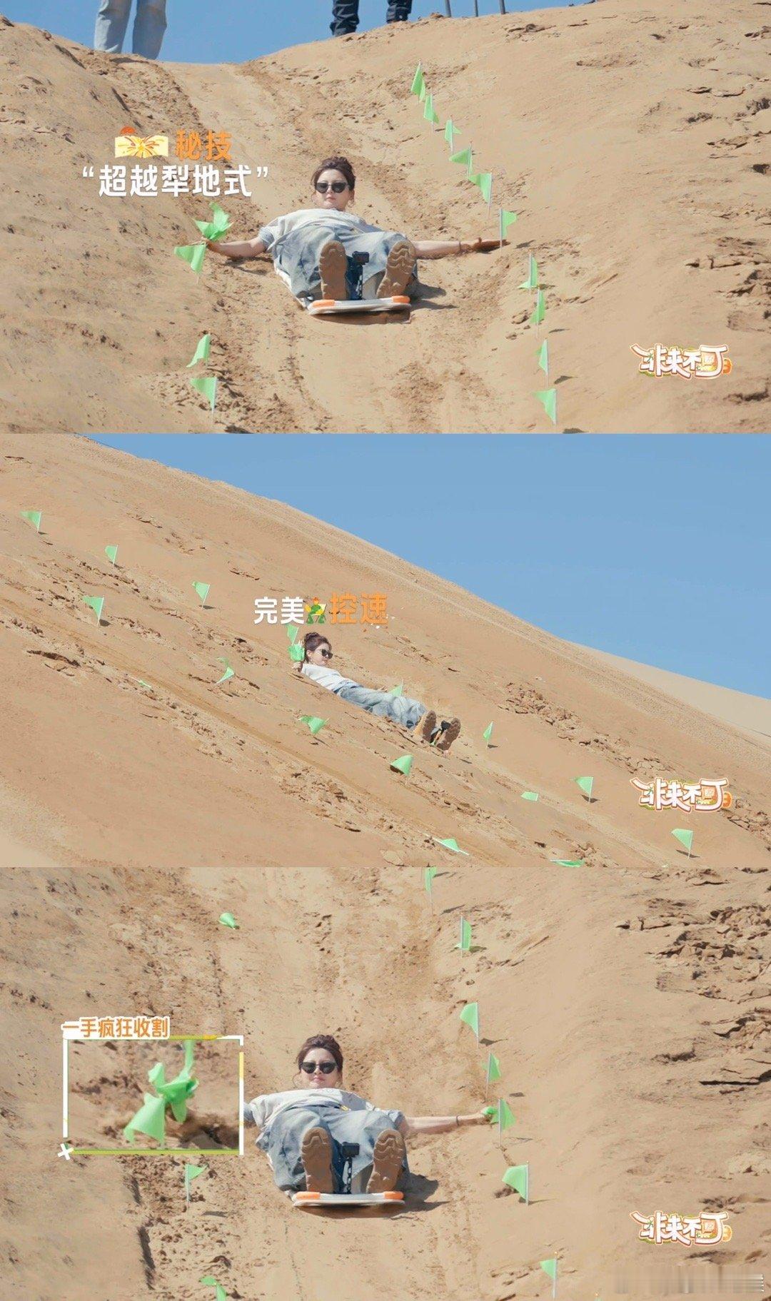 杨超越滑沙也在干农活 《非来不可3》杨超越解锁滑沙新姿势!干农活式拔旗高效又搞笑,网友夸其眼里有活、学得快。