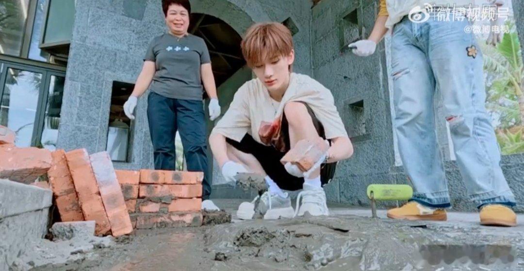 余宇涵砌灶台和上舞台一样认真海角88号 余宇涵的认真感太戳人!上舞台用心表演,砌灶台时搬砖块、量尺寸也超投入,反差萌绝了!