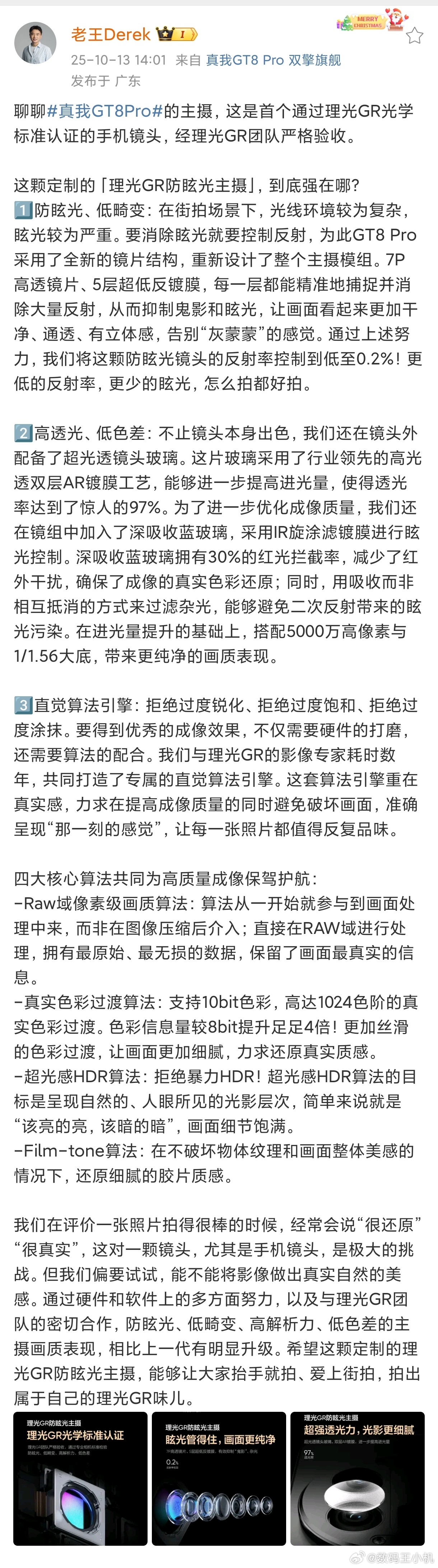 真我GT8Pro深度定制:理光GR防眩光主摄