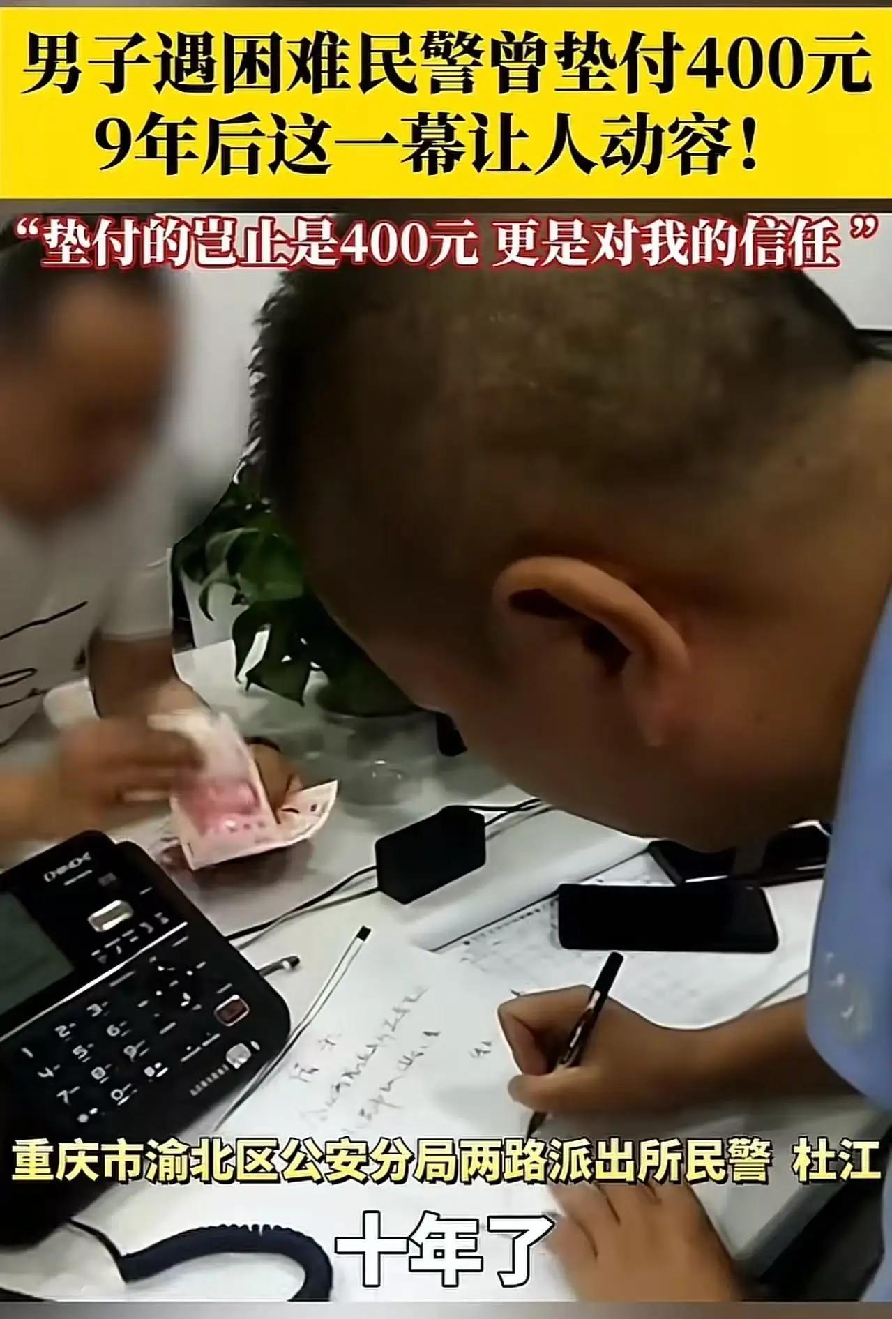 这一幕让人动容!重庆,男子遇困难时,民警伸出援手,垫付了400元,男子当场保证会还钱,还写下了欠条。那一刻,谁都以为这只是一场善意的帮助,一次温暖的善举。然而,时间仿佛在那一刻按下了暂停键。 几个月过去了,男子却“食言”了,不仅没有归还那点钱,还借机消失得无影无踪。更令人心寒的是,民警的同事们开始取笑他们,说遇到骗子了!“帮了个忙,反被当成了傻子。”有人甚至调侃:“这年头,善心也得擦亮眼睛。” 然而,谁曾想到,九年后,一个陌生的电话打破了所有的平静。那头传来一个熟悉的声音——是当年的那位男子,他带着一份迟来的歉意和坚定的语气,说:“我来还钱了,欠您的那400元,我一定要还清。”这突如其来的出现,让所有人都愣住了。 这背后隐藏着怎样的故事?为什么他会在九年后,带着如此执着的心情,主动找到民警?这其中的转变,是否意味着人性的善与恶、信任与背叛的复杂交织?我们不得不深思。 或许,他曾经也是一名普通人,陷入生活的泥潭,迷失了方向。那次的借钱,也许只是他人生中一次错误的选择,或许是一次无奈的求助。九年时间,人生的风风雨雨,让他明白了诚信的价值,也让他懂得了善意的可贵。 这件事告诉我们,善良和信任,是社会最宝贵的财富。即使有人曾经“食言”,但只要心中还有那份善意,总有一天会迎来最温暖的回应。我们也许不能控制别人的选择,但可以坚持自己的善良,因为善良本身就是一种力量。 更令人感慨的是,民警的那份信任和帮助,或许在当时只是出于一份职业的责任,但它却在时间的长河中,发酵成了最真挚的人性光辉。那份坚持和宽容,激励着我们每一个人:不要轻易放弃善意,也许下一秒,就会迎来意想不到的奇迹。 这件事,像极了生活中的一面镜子。我们在助人为乐的同时,也在等待那份善意的回响。或许,正是这些温暖的瞬间,才能让这个世界变得更加美好。让我们都学会用一颗善良的心去面对生活中的每一次遇见,也许,下一次的“九年后”,就是我们人生中最美的奇迹。 所以,朋友们,别轻易放弃信任。因为,善意从未白费,它会在某个不经意的瞬间,绽放出最耀眼的光芒。民警暖心的一幕 民警暖心帮忙