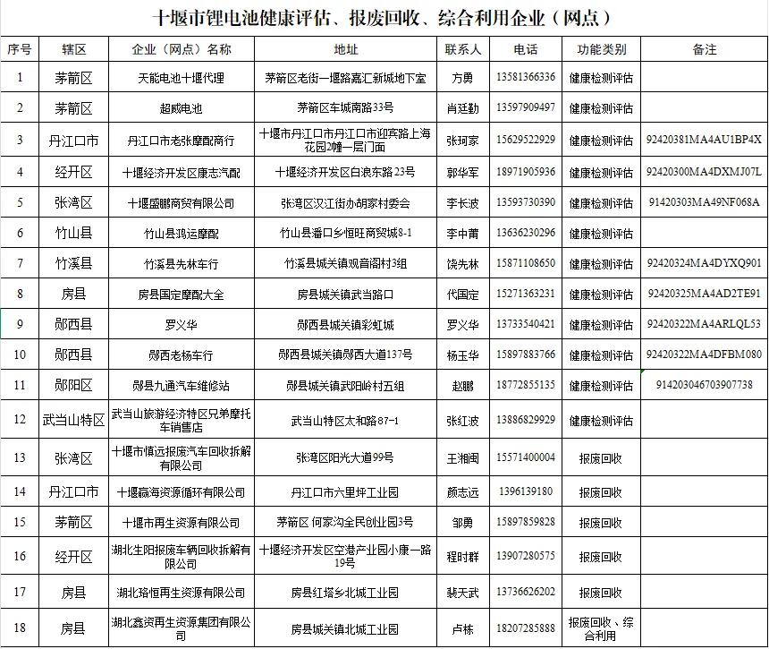 近日,十堰消防部门公布我市首批健康评估和报废回收网点,可提供电池检测、评估服务↓↓↓