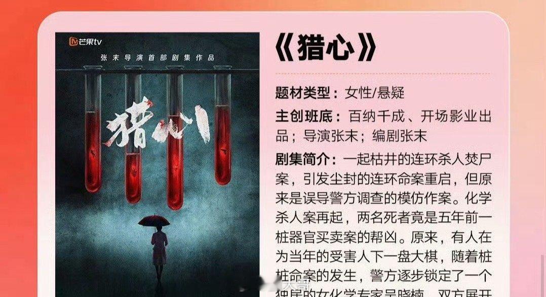 哦哟,终于等来电视剧《猎心》的新消息了啊,新剧要在明天开机了,男女主定了张小斐和于适,又是一对新鲜的组合,于适也要在长剧赛道闯一闯了,有点期待张小斐和于适能擦出啥样的火花”