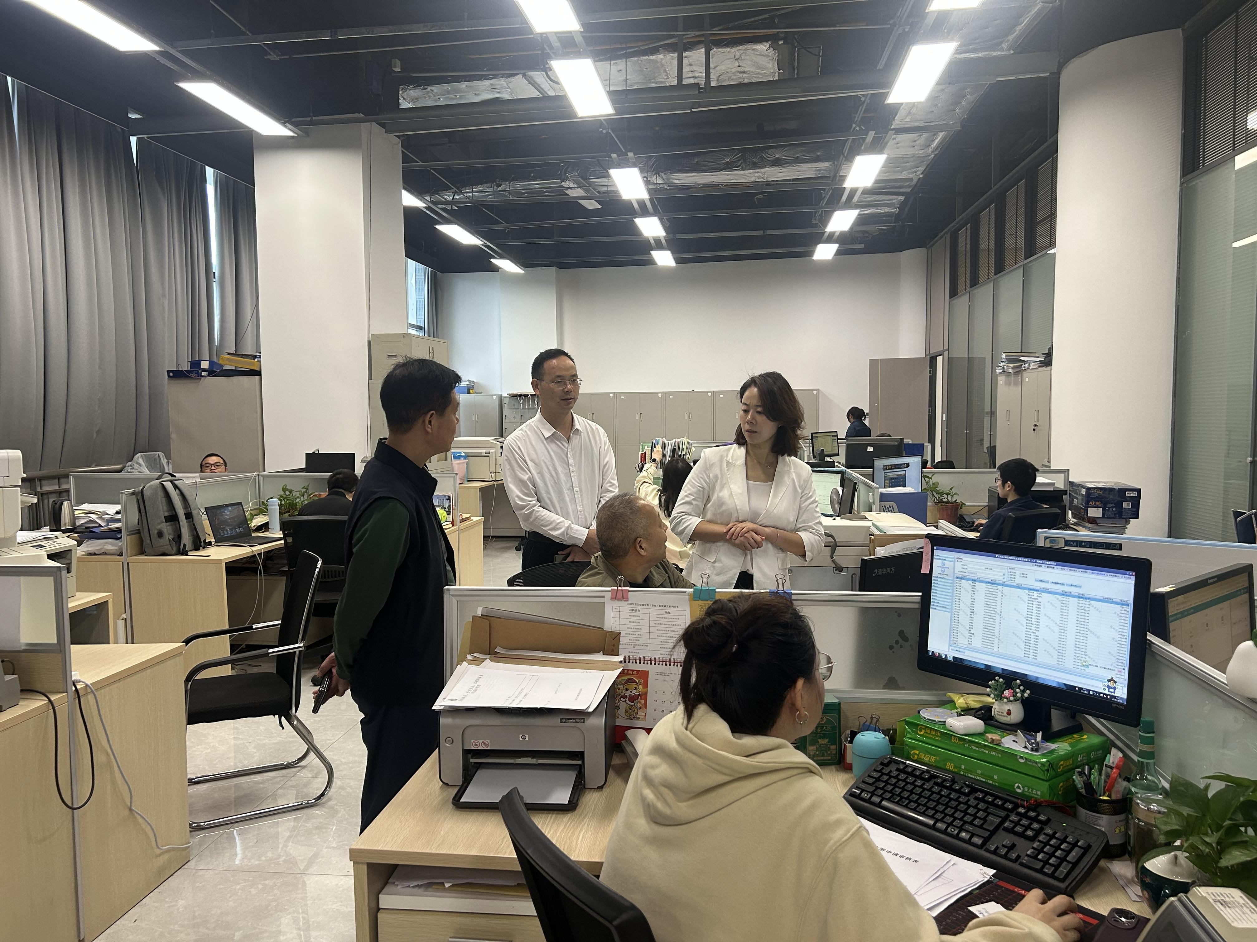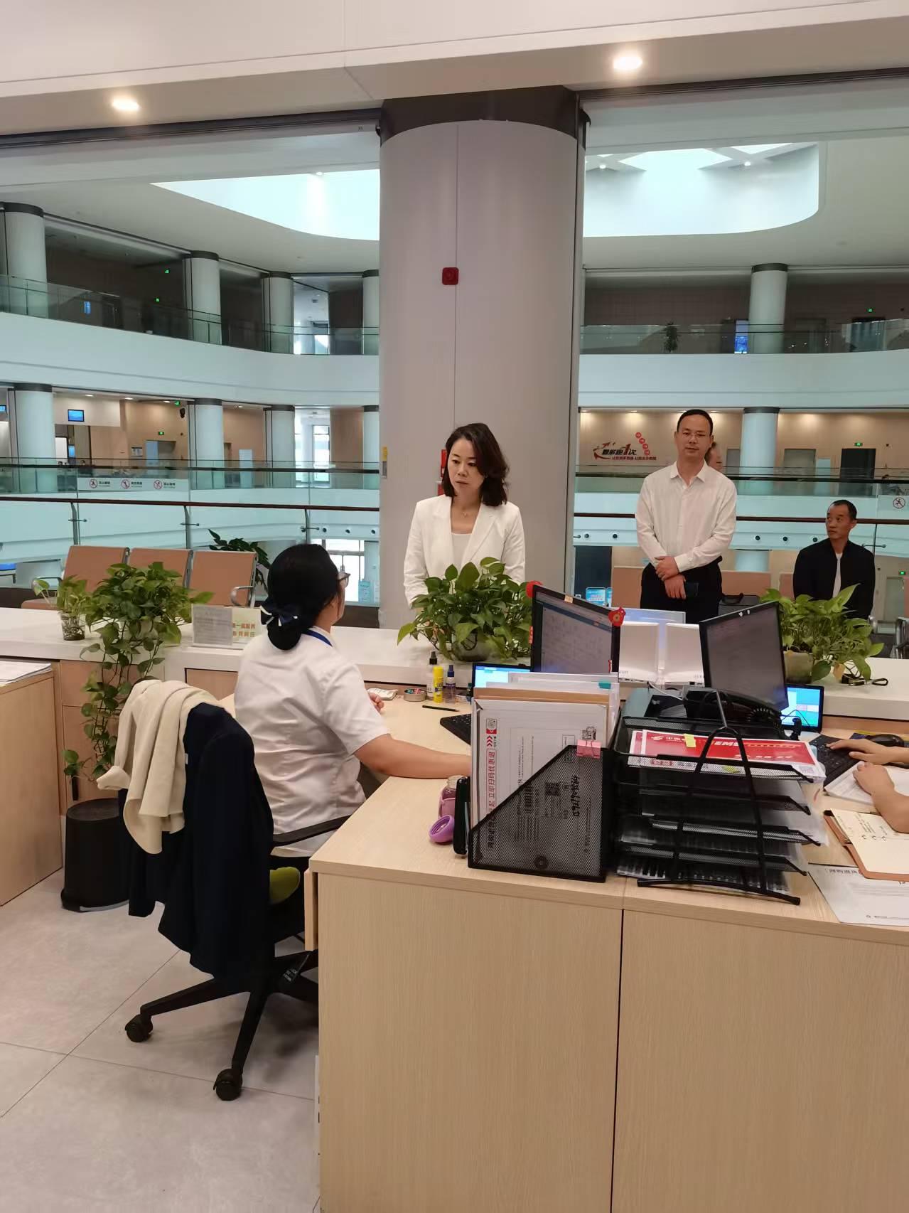 在前台受理窗口,杨帆局长与工作人员亲切交流,听取相关意见建议;在后台办理窗口,杨帆向局驻点人员详细询问政务服务事项清单及出境旅行等部分重点事项,亲身体验“全国旅游监管服务平台”业务经办流程,深入了解文旅政务服务中的堵点、痛点、难点问题。