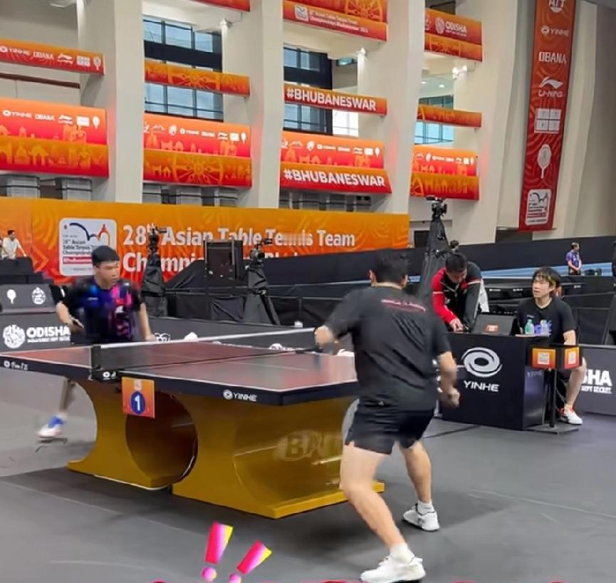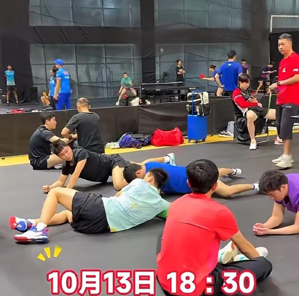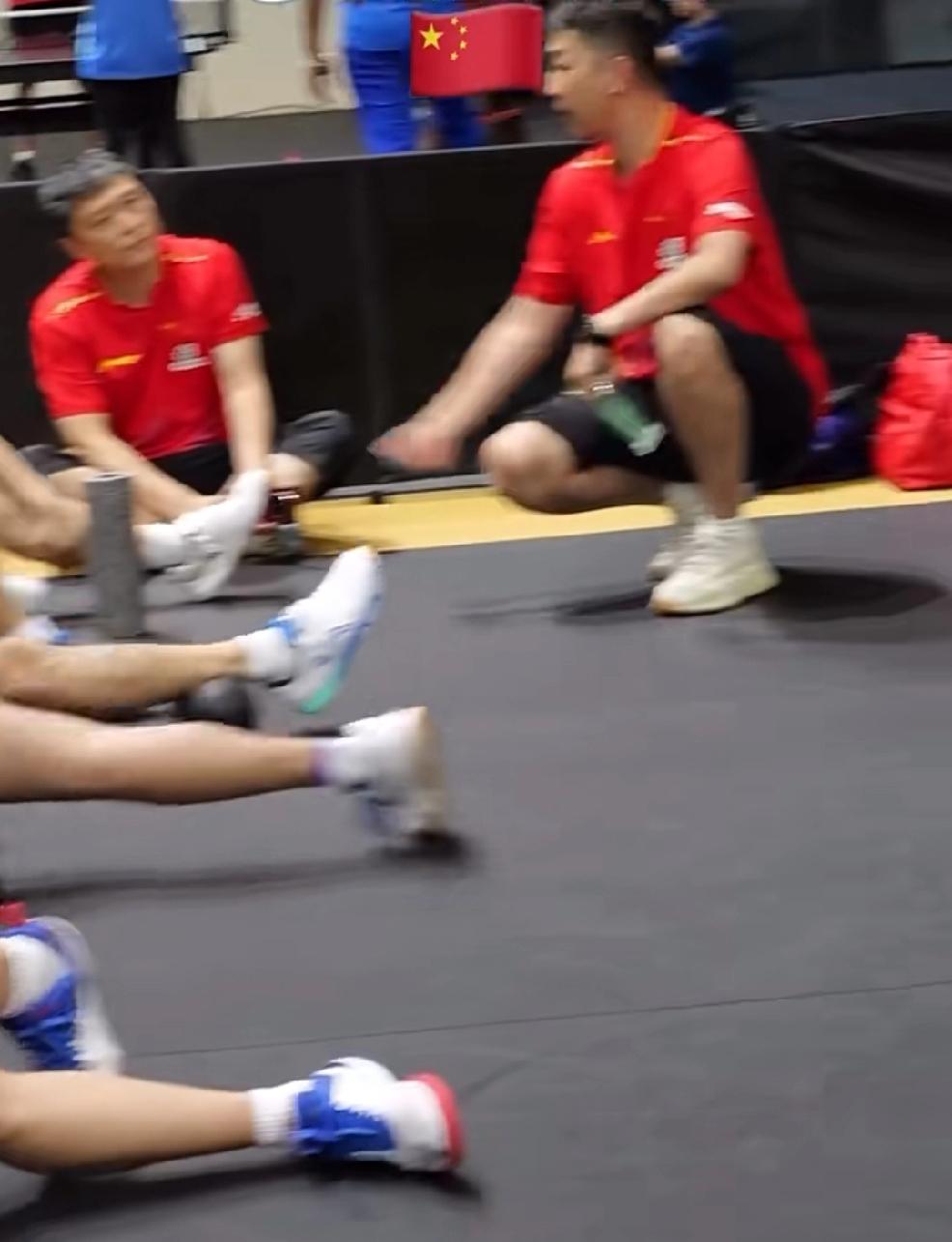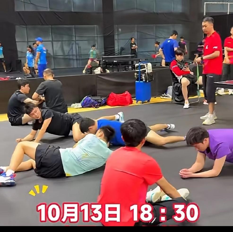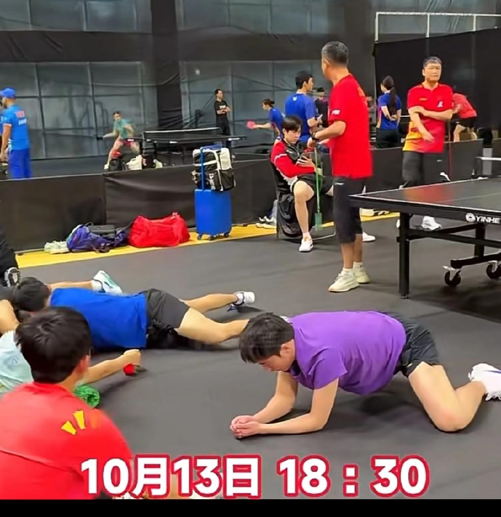 亚锦赛: 国乒今天要迎来在亚锦赛的首秀了, 对战伊朗男团。 队员们都在热身, 只有王楚钦坐在旁边认真地观看, 大概是在看对手的打法了。 期待男团能3:0早点下班, 但是伊朗也不容小觑, 记不清是哪次比赛了, 直接干掉了日本, 所以国乒加油! 女乒今晚九点也要比赛, 加油!加油!