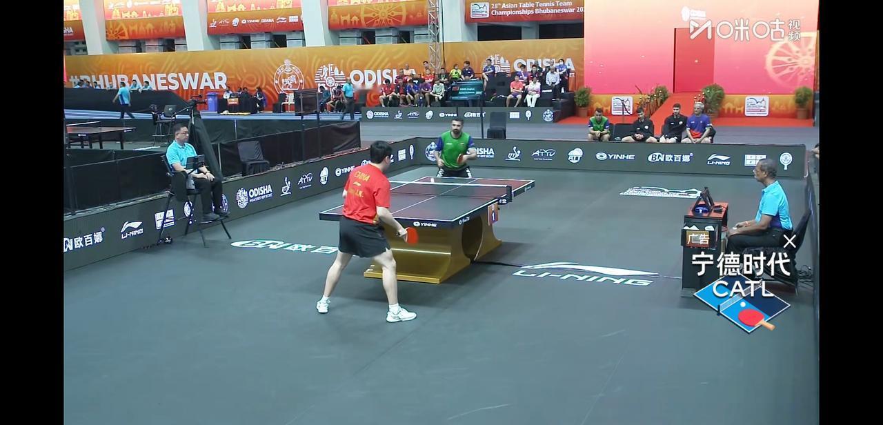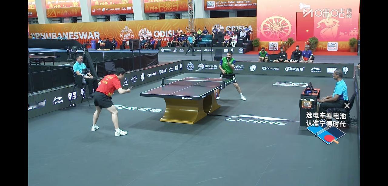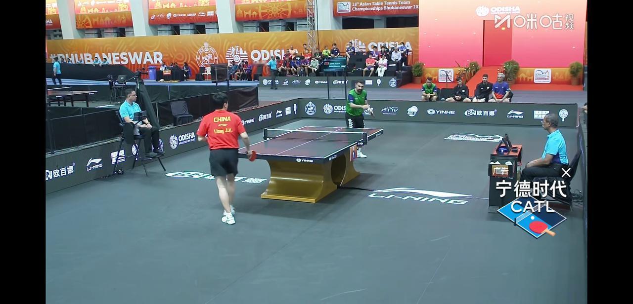 亚锦赛国乒男团对战伊朗男团, 第一单林诗栋2:3不敌伊朗小将。 第二盘梁靖崑出战, 也不知道为什么比赛现场裁判一直在弄什么, 一大会也没有弄好, 直接耽误十多分钟, 这种比赛主办方真是拉胯, 运动员打着球, 无人机就在头顶飞来飞去的, 哎呀,稀奇,稀奇真稀奇啊[偷笑]