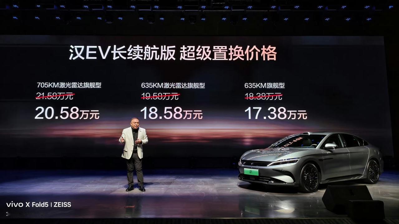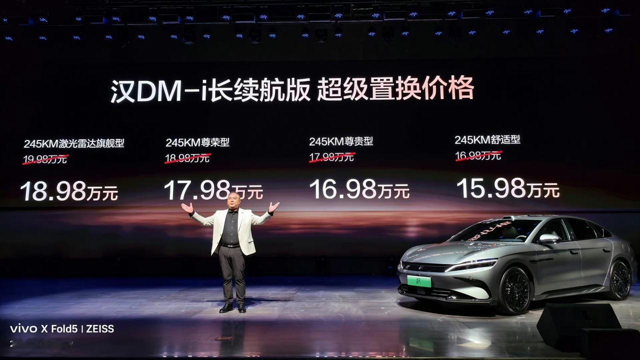 长途旅游续航焦虑?比亚迪汉长续航版解决你的痛点,动力美学进阶彰显百万实力。 在前几天,比亚迪汉长续航版正式上市,在美学、舒享、生态、智能、安全、效能六大维度实现了升级,推出DM-i插电混动和EV纯电动两大系列,汉DM-i长续航版(4款车型)15.98万~18.98万元;汉EV长续航版(3款车型)17.38万~20.58万元(10月31日前购车可享1万元置换补贴)。 汉DM-i长续航版纯电续航提升至245公里,亏电油耗低至3.44L/100km;汉EV长续航版百公里电耗仅10.6kW·h,续航最高达705公里,真正实现“跨省出行不焦虑”。 同时新车标配了高速爆胎稳行系统和云辇-C智能车身控制系统,跑高速更稳,过烂路更舒服。智能座舱接入了AI大模型,还新增了车载冰箱、主动降噪这些舒享配置,直接把豪华感和舒适度拉满了,这样的车真的是香炸了,你还有什么理由能够拒绝呢?