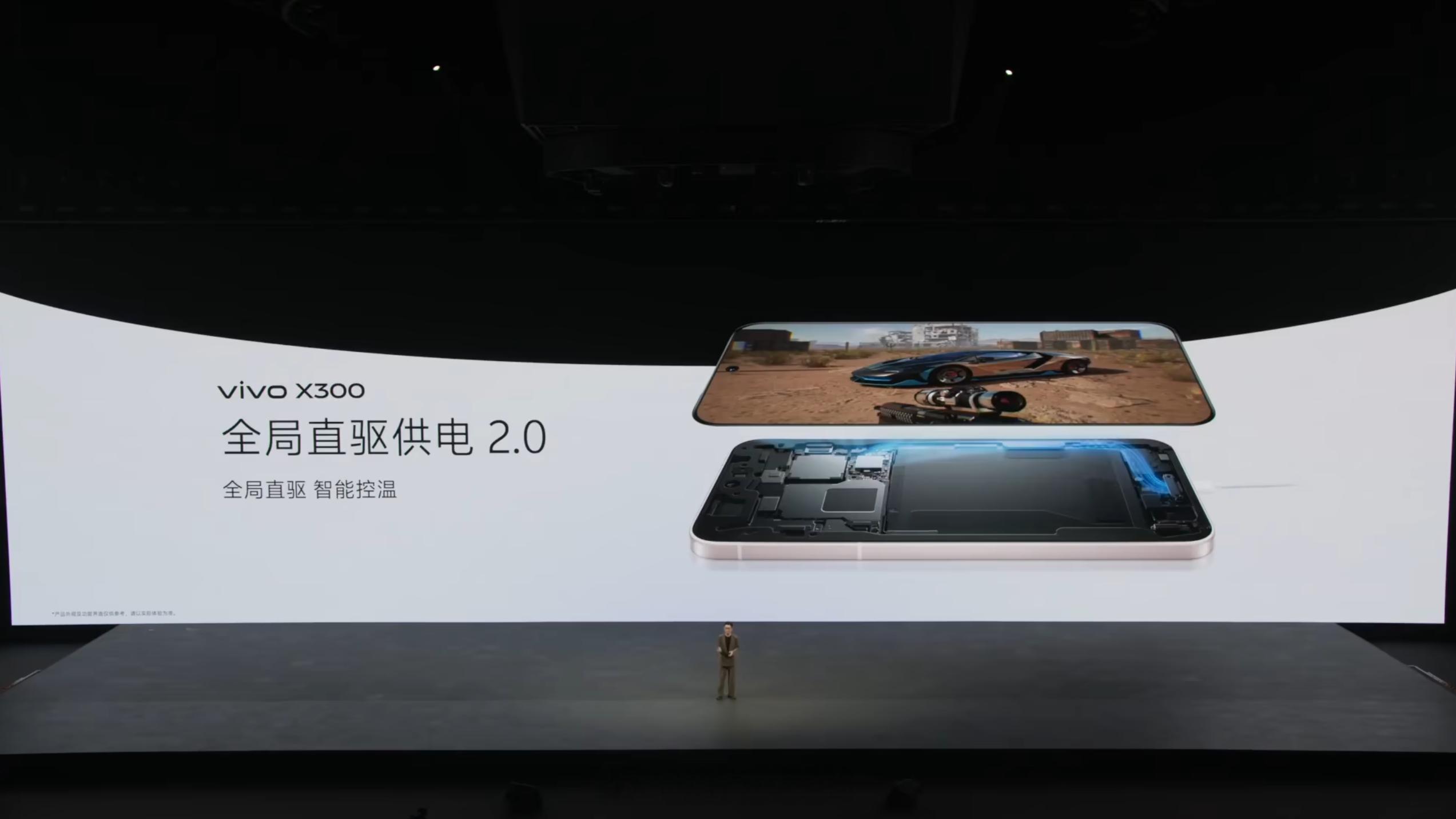 vivo X300 采用一块 6040mAh 第二代半固态蓝海电池,支持 90W 快充,40W 无线充电,支持全局直驱供电 2.0、微电精灵 2.0