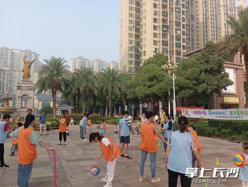 长沙晚报掌上长沙10月13日讯(通讯员侯湘衡)“妈妈,传球!”“崽崽,注意身体重心向下!”10月12日下午,望城区月亮岛街道黄都港社区富基世纪公园小区广场上热闹非凡,欢呼声与笑声此起彼伏。为响应国家全民健身号召,落实“向阳花”行动——家庭健康年工作要求,增进亲子情感交流、丰富社区文化生活,黄都港社区联合望城区妇联、小区物业服务中心共同举办亲子家庭趣味篮球活动,14组亲子家庭欢聚一堂,在运动中共享欢乐时光。