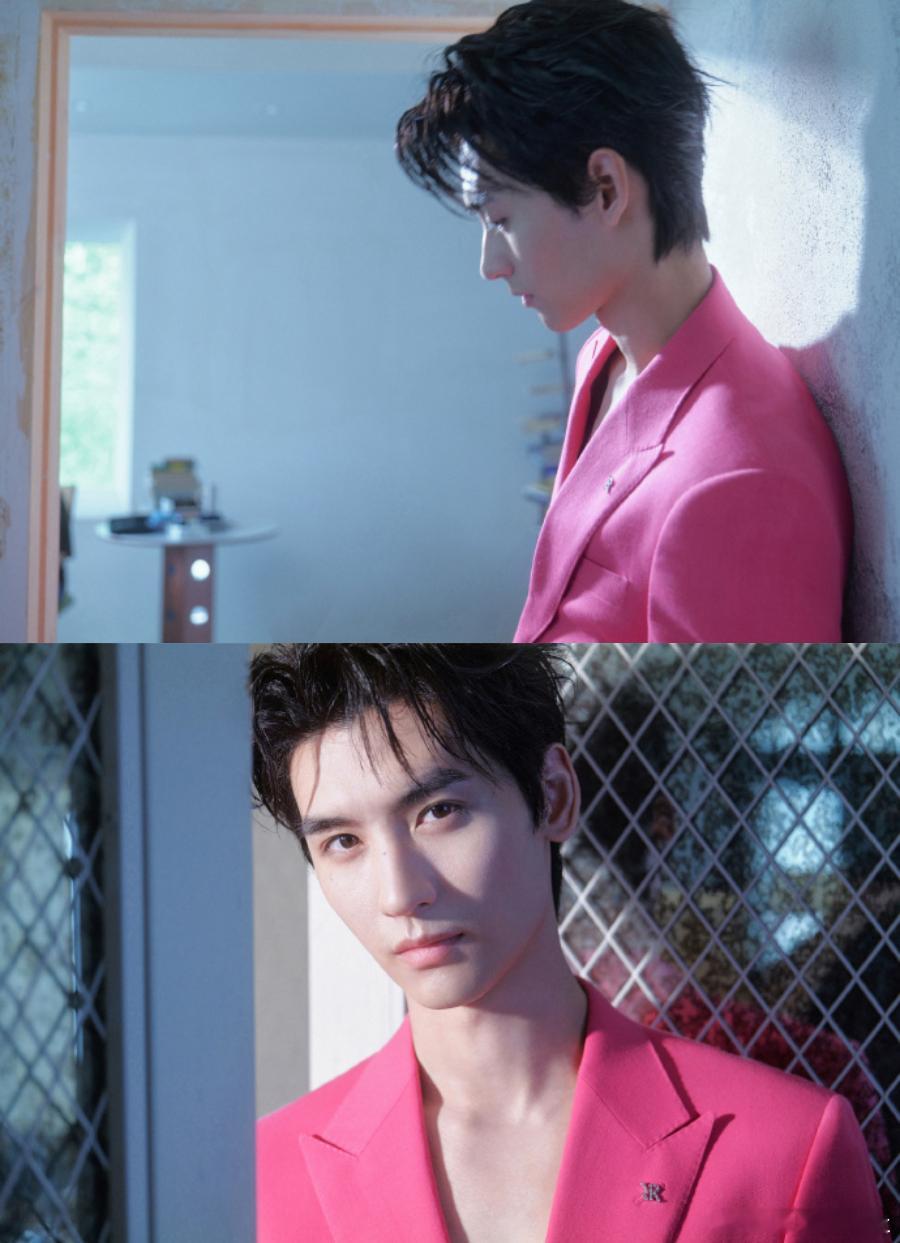 黄俊捷深V完全是主人级别 这次造型再次见证了黄俊捷的时尚表现力,深V设计与玫粉色