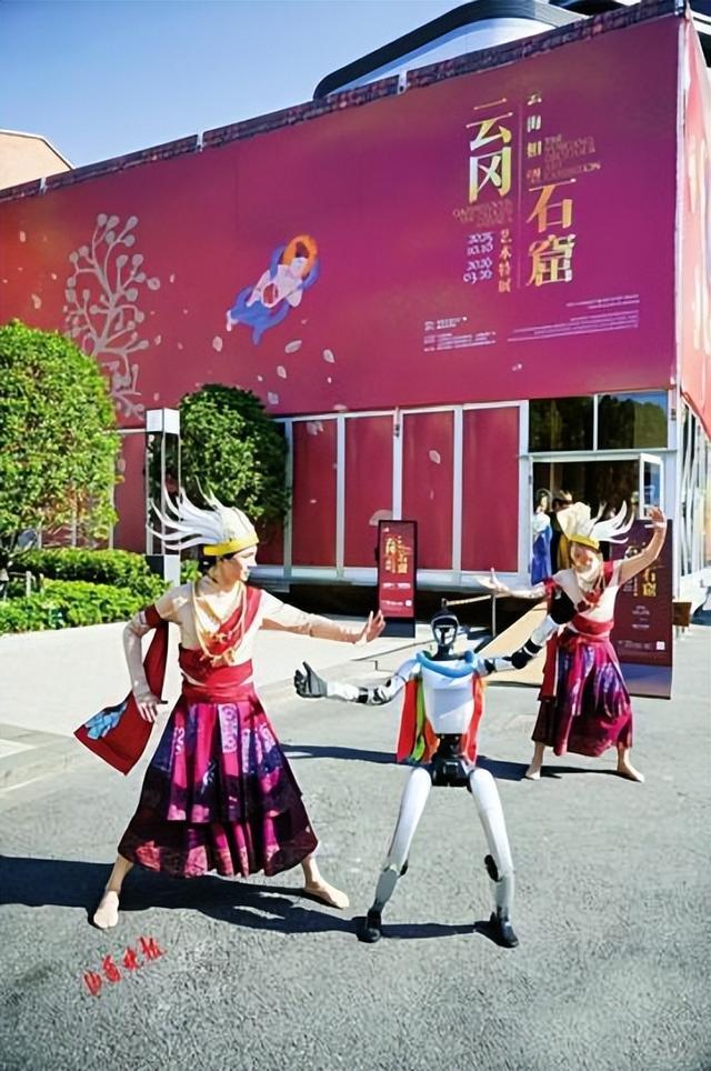 本次特展还带来了“2023全球世界遗产教育创新案例奖”——云冈乐舞的上海首秀。这支乐舞由田晴及其团队执导编排,以云冈飞天、力士等形象姿态为蓝本、融合北方游牧民族音乐风格,再现了北魏胡汉艺术交融语境下的乐舞场面。此外,机器人也为观众带来了以云冈第9窟十组雕刻为原型、失传的舞蹈,体现了科技与艺术的完美融合。