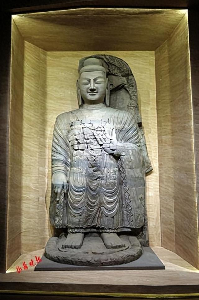云冈石窟第20窟,是最早开凿的五个洞窟之一,其主佛为标志性的露天大佛,更是大同旅游的一张闪亮名片。可能很多游客都有印象,大佛的东侧有一尊立佛,但不知道大家是否认真观察过,大佛西侧并不是一块完整的平面,其凹凸不平的状态表明了这里曾经也有一尊立佛,只是因风化、破坏等因素几近消失。本次展览中,最令人称奇的是,云冈石窟第20窟西侧曾消失千年的立佛,通过数字技术和3D打印技术完整再现,这也是其首次公开展出。
