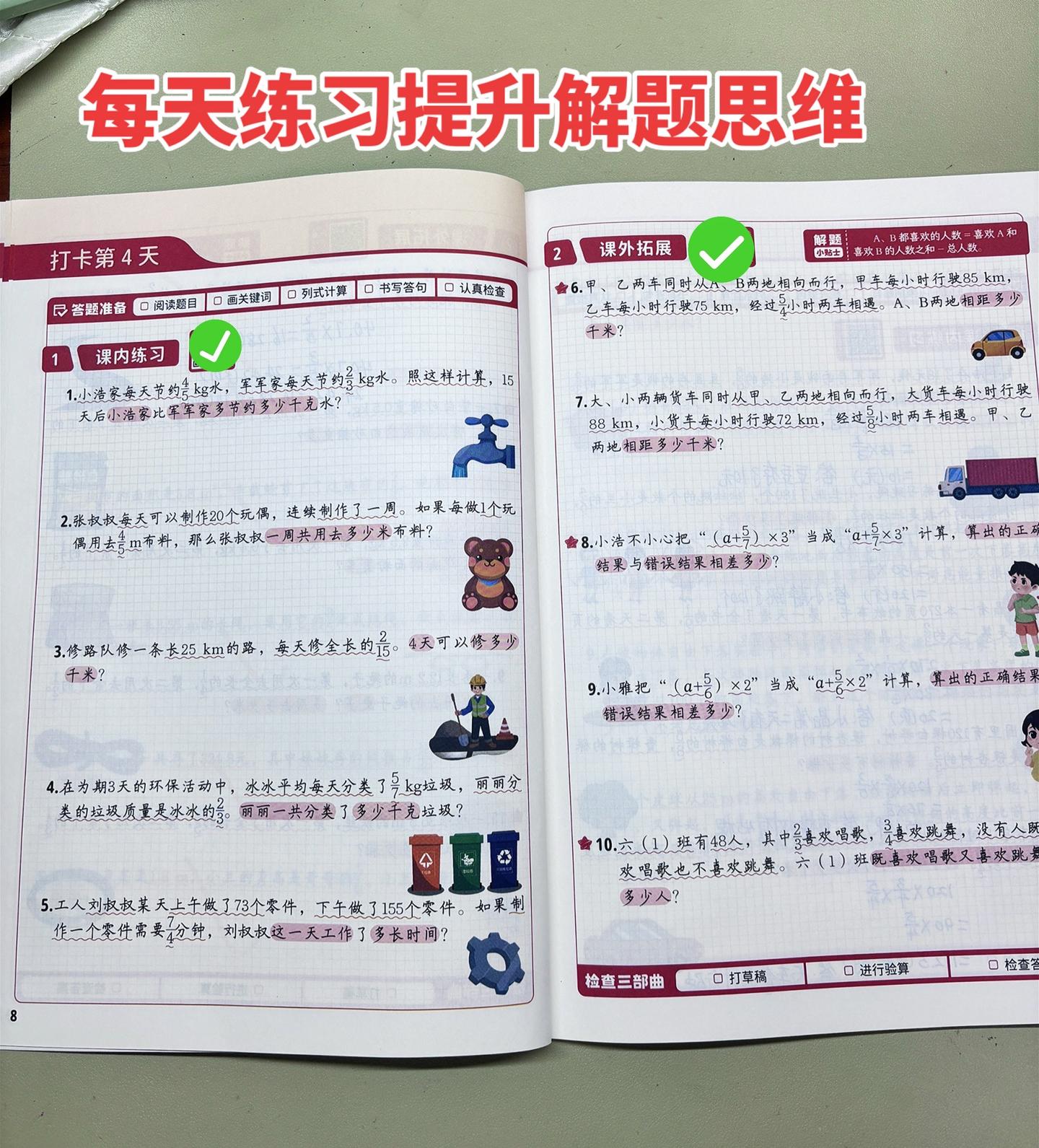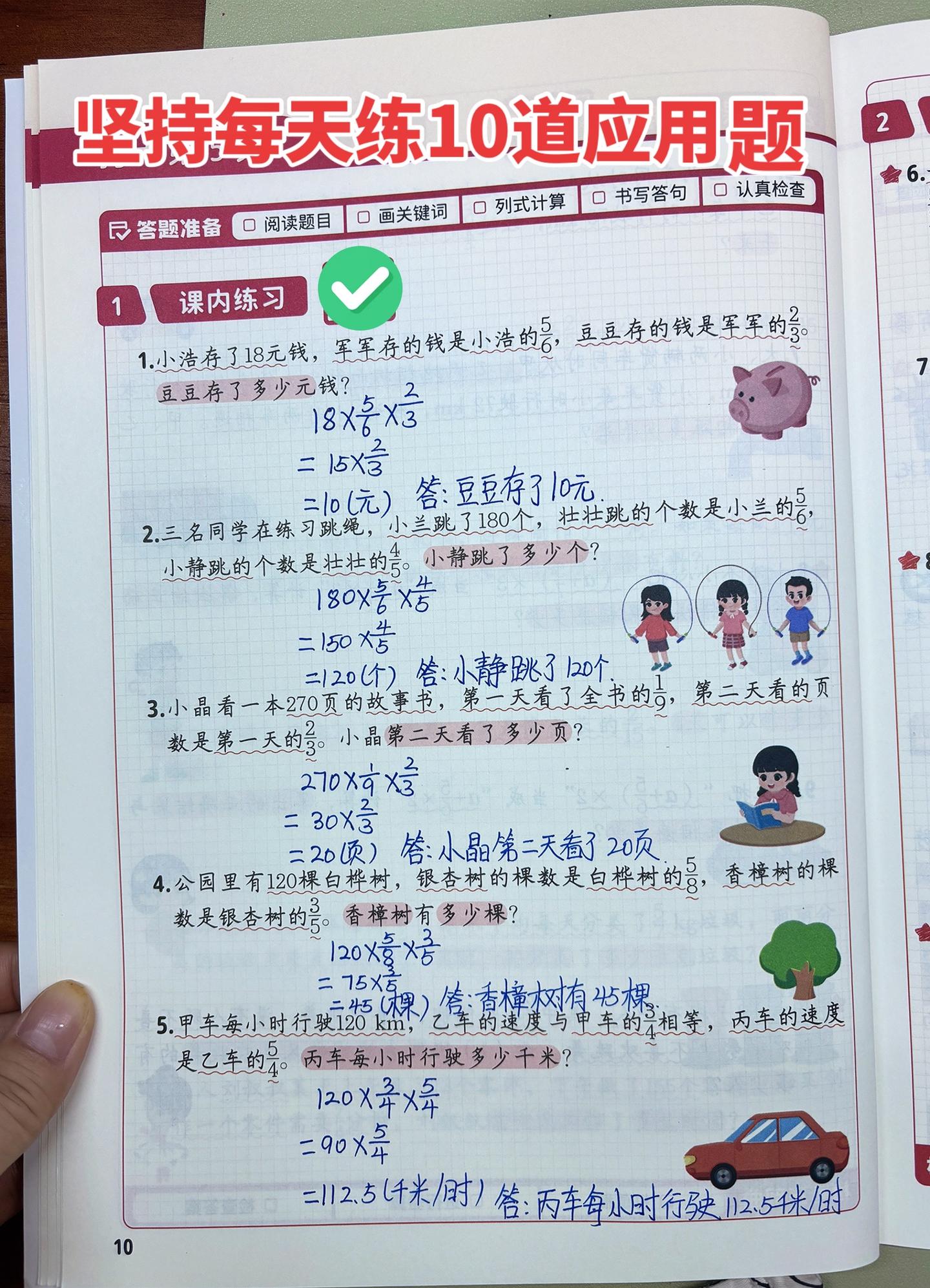 数学拉开差距的就是应用题,每天十道应用题。帮助孩子规范答题步骤,提升解题能力