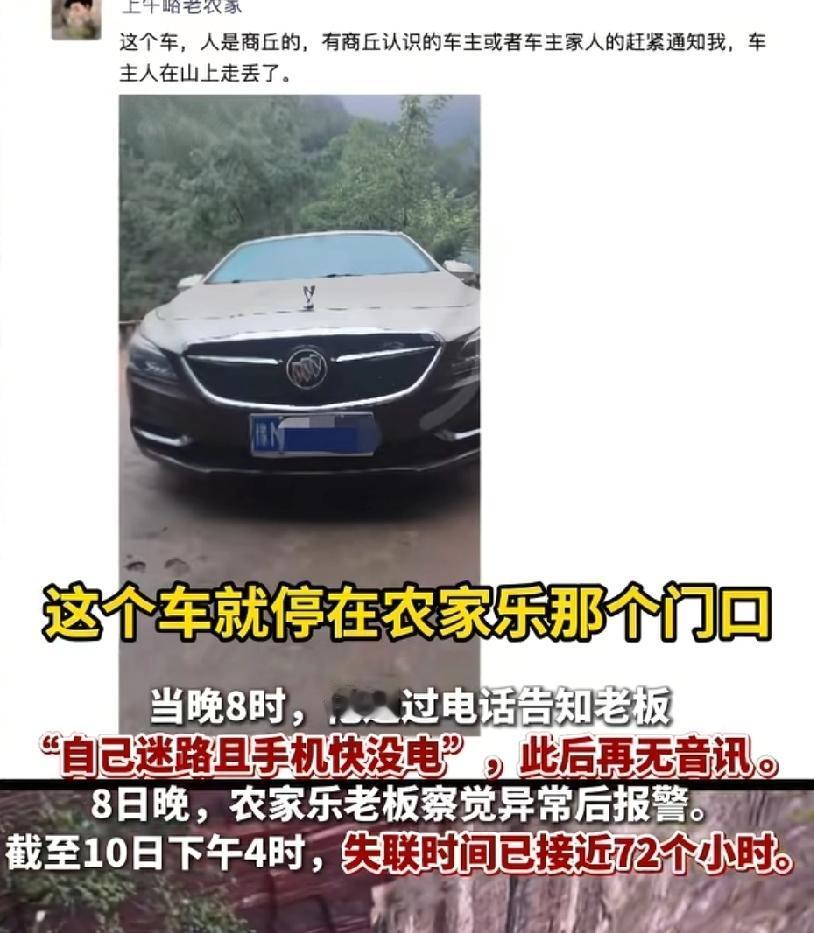 29岁男子去农家乐,独自一人穿西装皮鞋一瓶水进山失联,还是农家乐老板报的警 今天失联已经第七天了,能不能活取决于他抽不抽烟,抽烟必带火,带火必能活,7天低温,没火必翘。三天饿九顿就已经危险了,他会生火保体温吗?他能吃树叶草根吗?不过还是希望能来得及。他走这条线有陡峭的地方,而且下雨湿滑,晚上根本不能走,看不见路,而且路还都是蚯蚓路。可能走到山的另一面的脚下,然后,前面还有连绵不断的山