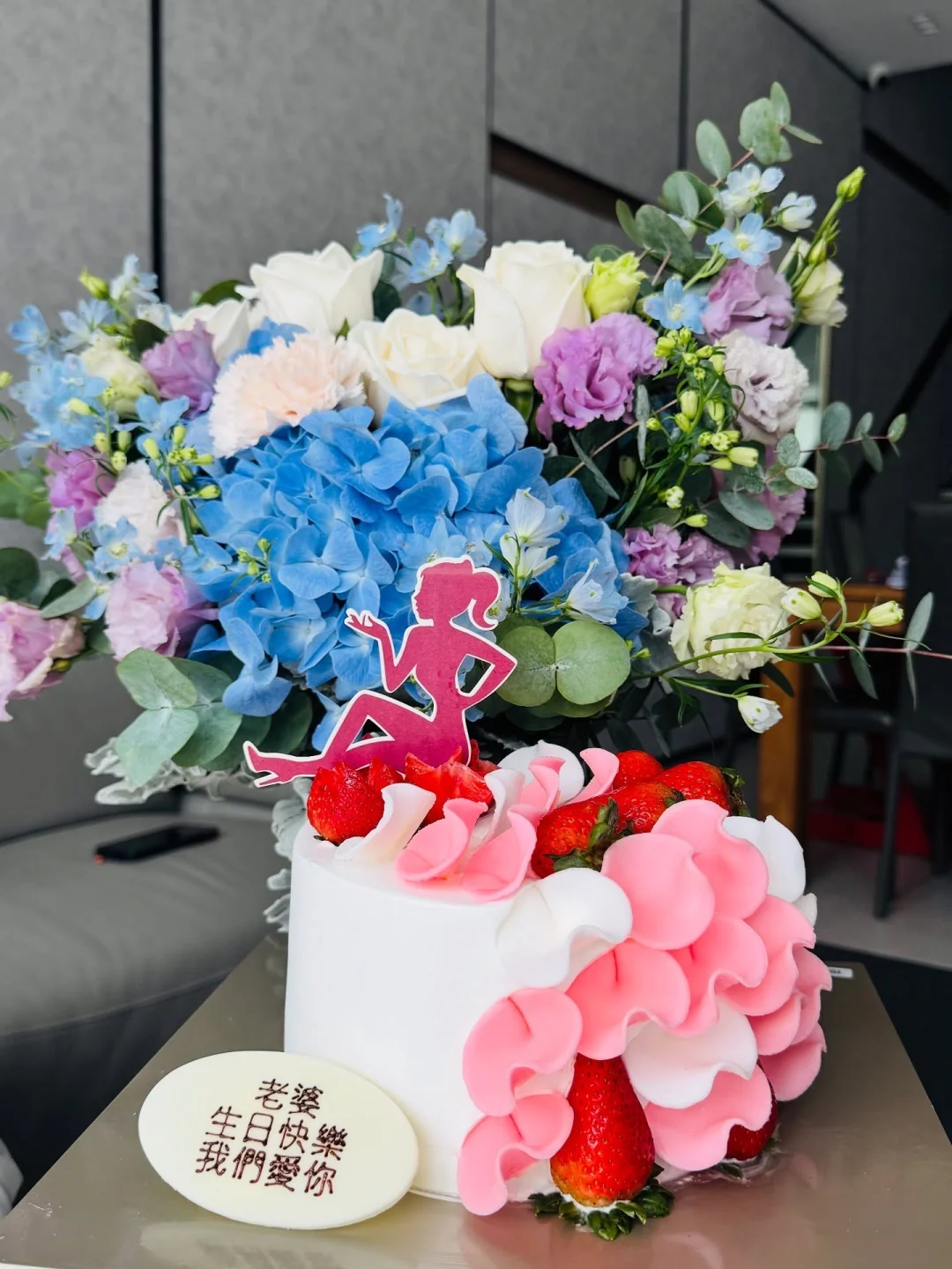 张晋为老婆蔡少芬庆祝生日,有爱的一家五口