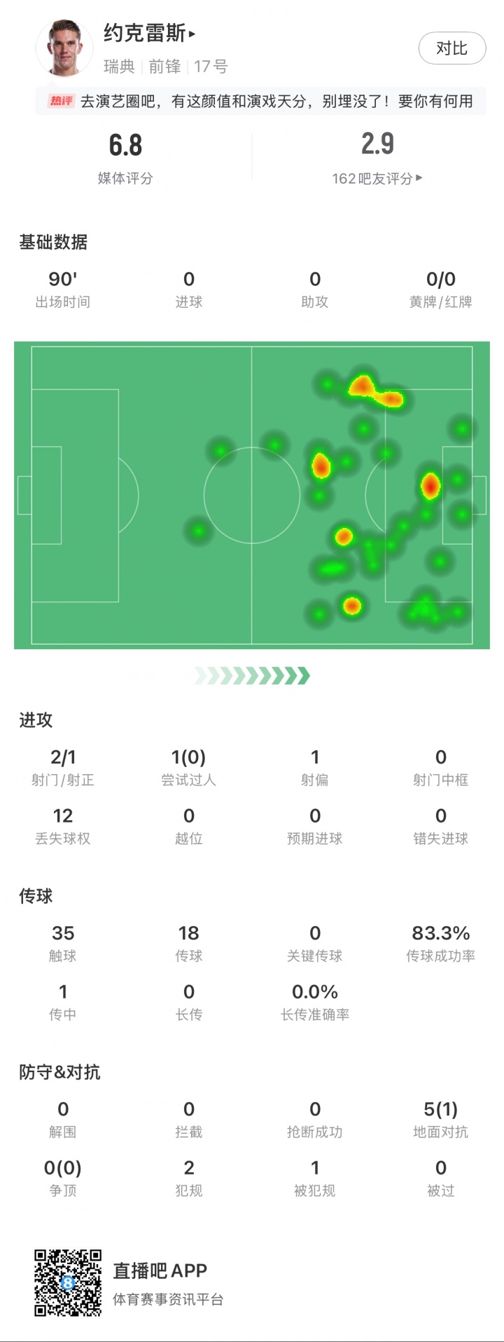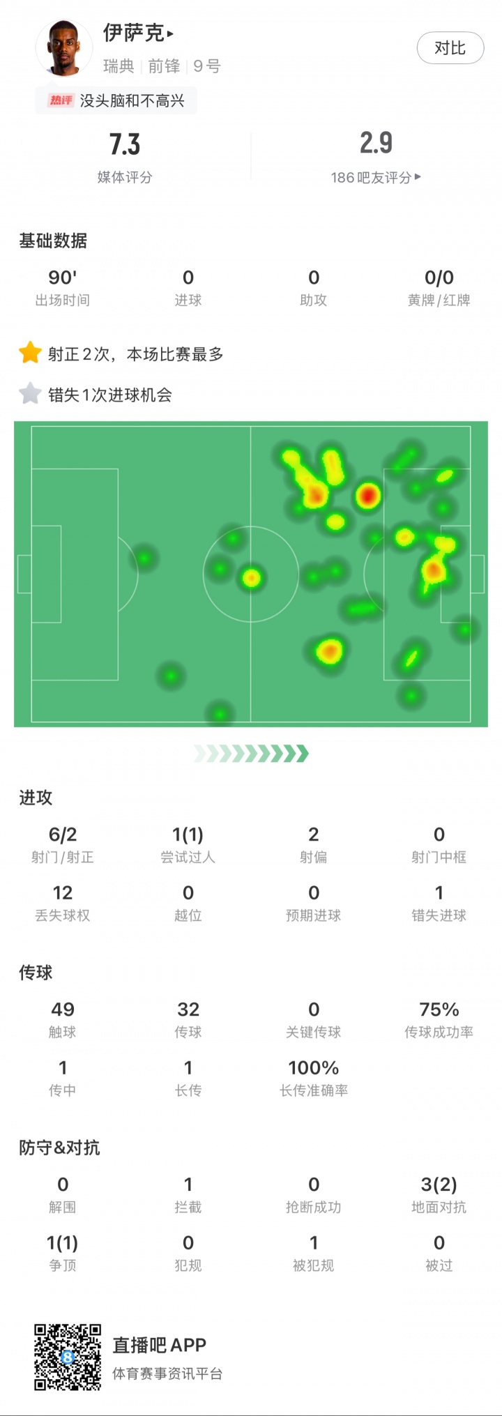 10月世预赛,瑞典先后在主场0-2不敌瑞士、0-1不敌科索沃,两场比赛伊萨克和约克雷斯均搭档双前锋,首发打满全场,两人合计11次射门3次射正0进球,其中伊萨克7射2正、约克雷斯4射1正。