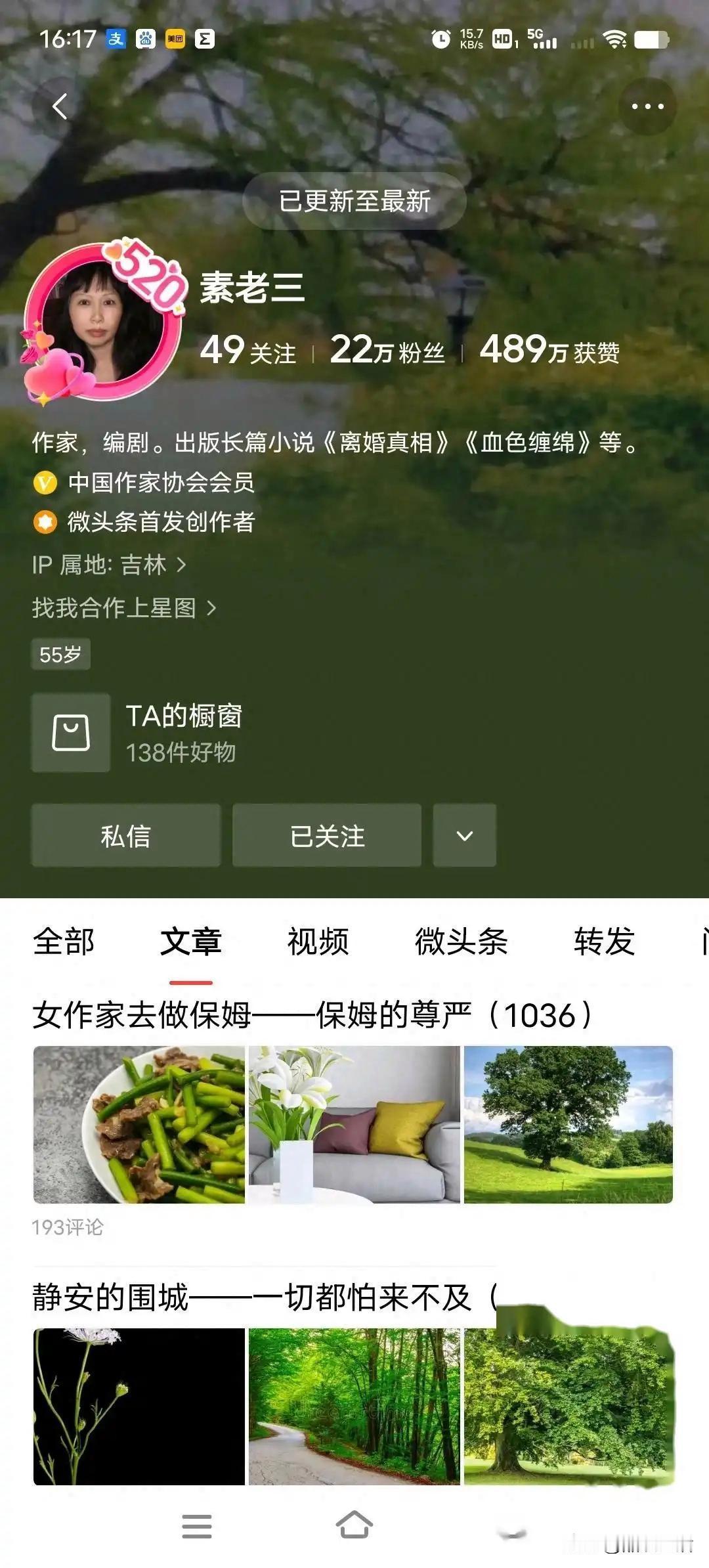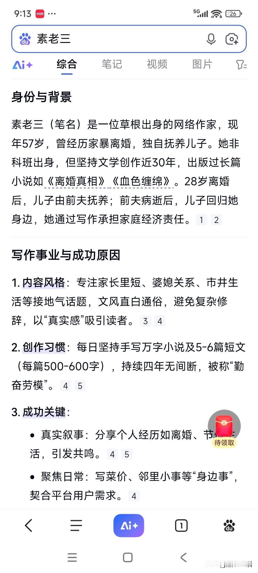 这就是日更1万字,7天收入8000元,素老三的照片!他的儿子,晒出59岁老妈白发驼背,老太太的模样,引起大家热议! 第一张是儿子拍得老妈和孩子们的日常截图,第二张是素老三自己配图,写的微头条! 印象中能日更一万字,写出《血色缠/绵》《离婚真/相》2部小说,已经出版,头条上更是能同时更新2部长篇的人,每星期收入达到8000多,每月还“补贴”儿子家2000的人,怎么也不会是这样的“农村妇女”的形象! 但是这就是她的真实写照! 5年前,关注素老三,她从垂直写自己“断舍离”及1000多元退休工资,入驻头条, 那会她收益不稳定,还需要去做“保姆”兼职收入! 现在竟然可以月入2万元,也真的是头条的偏爱, 她和“汪阿姨”是好友, 以前只专注长篇文章的她,听从“汪阿姨”的建议,日更8个微头条,全是自己生活的私事,和儿子家“雪宝”的故事, 让大家对这名“作家”背后的故事很是好奇, 她独自抚养儿子,帮他买房买车,现在每月补贴2000元给儿子, 以前曾被认为儿子“啃老”,还有她“作家”的头衔遭到一些人的议论,起初素老三还会去“回怼” 现在,她却坦然接受了,并且化作自己的微头条,发表出来,于是大家越是热议,她的流量越高,收入越好! 她并不像汪阿姨一样,每条评论都回复,她的大部分时间都在创作,这也是她59岁比同龄人显老的原因吧! 凭自己的本事挣钱,挺让人佩服的!