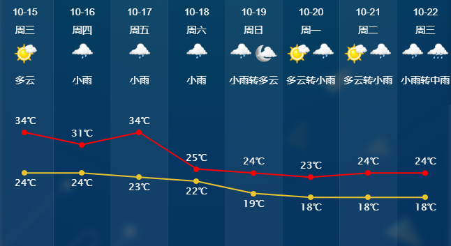 今天,在弱冷空气影响下,全省气温都将下一个台阶,大部地区最高气温都会跌到30℃以下。随后,16日还会有一股弱冷空气南下。由于近期低层不断有弱冷空气渗透影响,再出现大范围高温天气的可能性比较小。