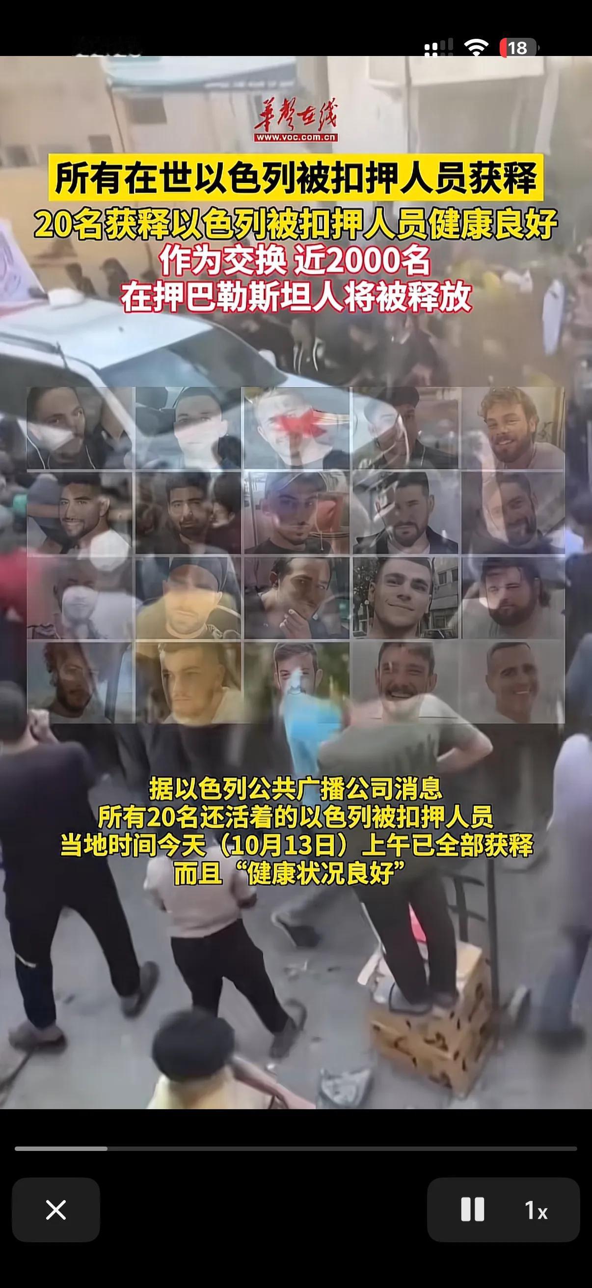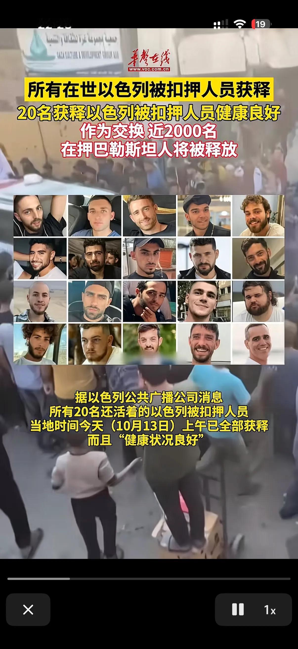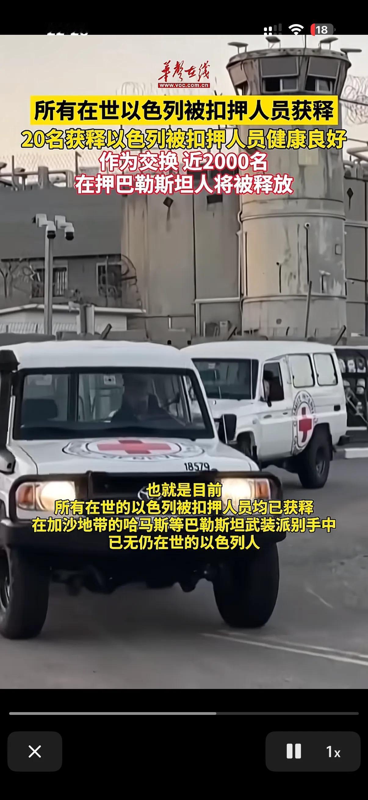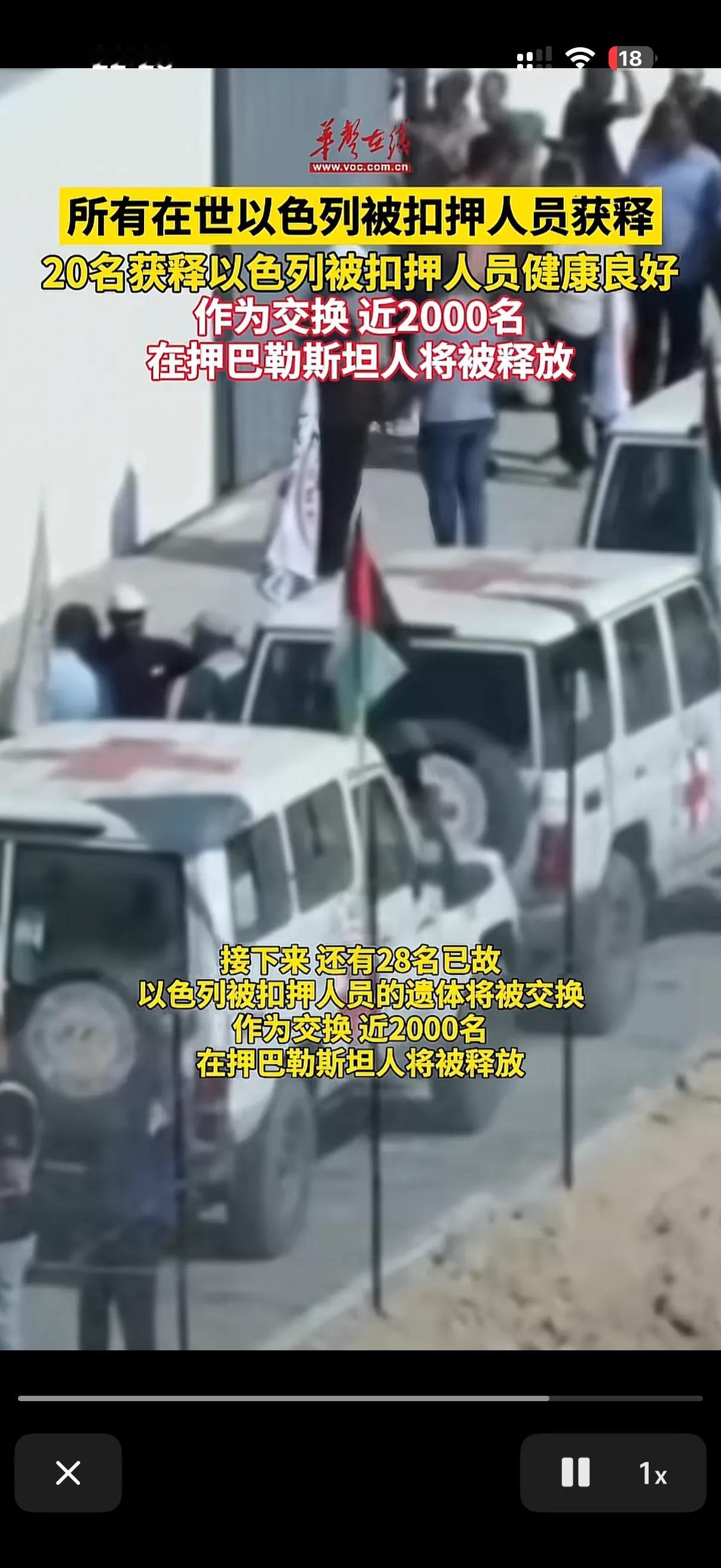 以色列和哈马斯终于开始互相交换人质了! 虽然在发表停火声明后双方都还有小规模冲突,但是加沙这里终于迎来了和平的实质进展,那就是双方开始第一阶段的互相释放对方的扣押人员,哈马斯释放了在押的20名以色列人。 而以色列这面也释放1986名巴勒斯坦国人。这其中还包括了被拘押了22年之久的人。 不得不说最开心的莫过于这些被释放的人的家人了! 接下来还有28名以色列被扣押人员的遗体也会被交还给以色列! 也有些人担心,现在双方手里都没有了对方的人质,那么一旦战争重启,那么以色列和哈马斯是不是就无所顾忌了呢! 也有人说,一旦战争开启,那么无论对方手里有没有彼此的人质,哈马斯也好还是以色列也好都不会为了人质妥协的,毕竟只有战争胜利了才有权利谈一切。 不过不管将来如何,至少目前为止,哈马斯和以色列表现出来的都是努力向和平方面推进!