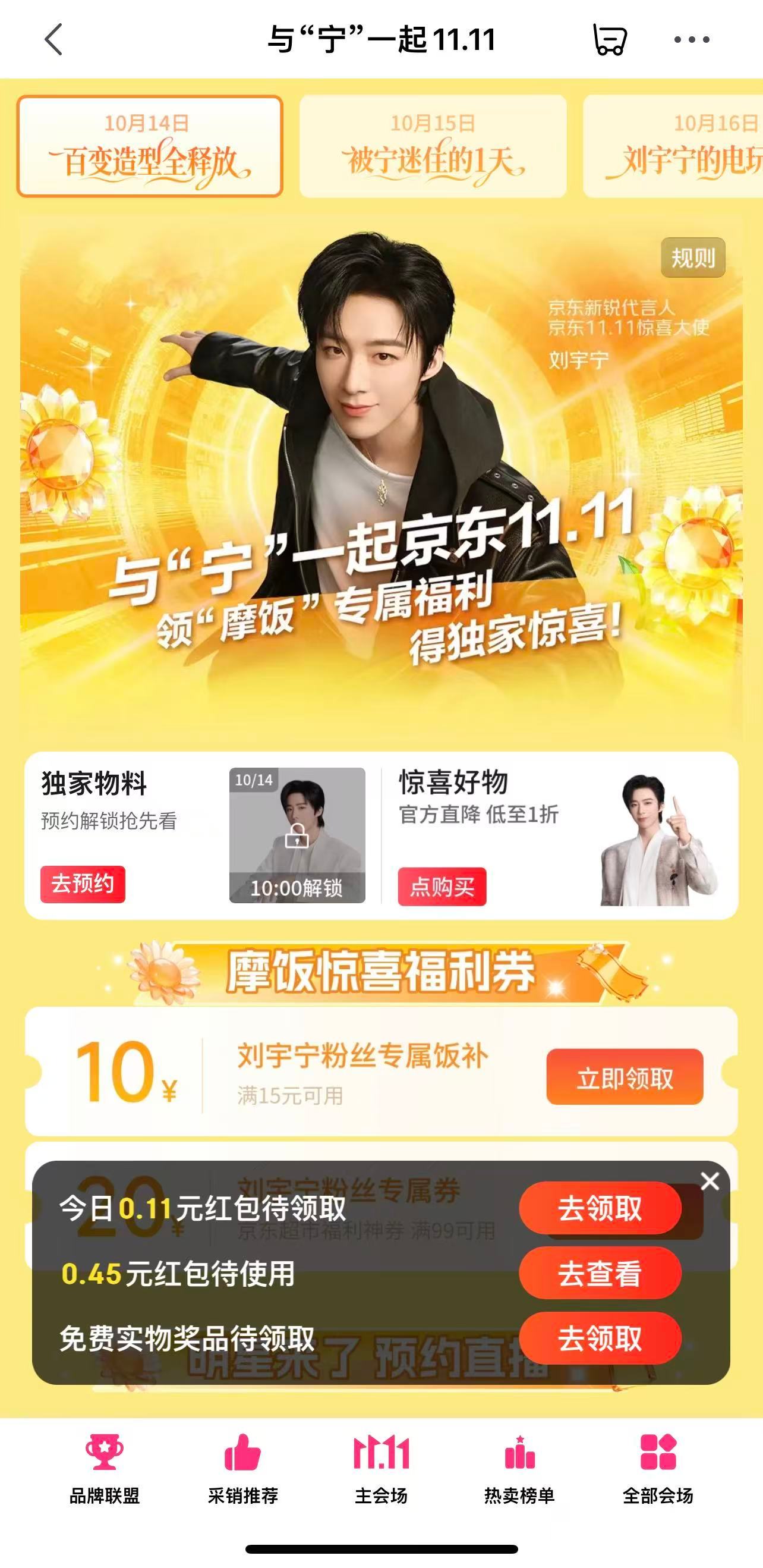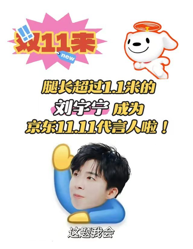 摩登兄弟们,集合啦!我们老大刘宇宁拿下京东11.11全线代言人了!排面必须搞起来!10月14日晚8点起,京东11.11连续3天秒杀,现货不用等,用实际行动告诉品牌方他们的选择有多正确!大家准备好了吗?京东11.11 又好又便宜 刘宇宁腿长超1.1米今晚京东11.11连续3天现货秒杀摩登兄弟[超话] 惊喜掉落: