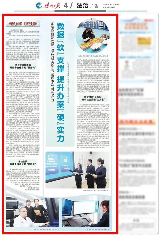 依托全国基层检察院唯一通过CNAS(中国合格评定国家认可委员会)认证的电子数据实验室,乐陵市检察院搭建专业办案体系,推动检察监督从“被动受案”向“主动出击”跨越,让数字数据成为破解办案难题、服务高质量发展、推进社会治理的关键引擎。9月26日,省检察院印发通知,确定10项全省检察文化品牌助力高质效履职典型事例,乐陵市检察院数字数据赋能法律监督相关做法位列其中。