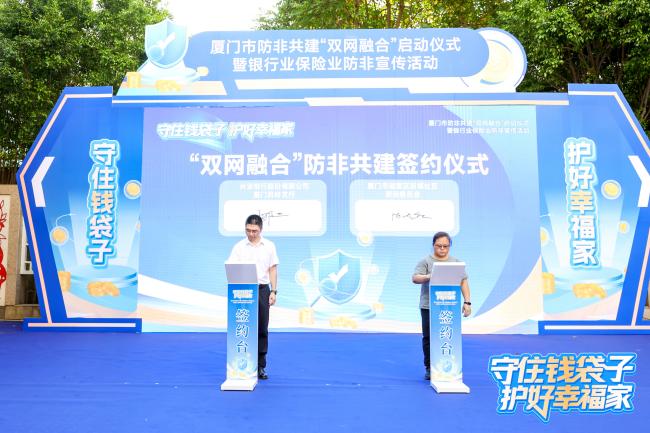 活动当天,兴业银行厦门吕岭支行与厦门市湖里区后埔社区居民委员会现场签署《防非共建协议》。这标志着“双网融合”防非共建工作迈出了坚实的一步。根据协议,双方将以此为起点,构建“社区-网格-银行”三级联动,依托社区党群服务中心、银行网点等为阵地,通过组建金融宣教志愿小队、开设社区金融课堂、畅通风险信息共享机制等多元化合作形式,共同织密居民身边“全天候、常态化”的金融防护网,推动防非打非工作机制在社区走深走实,合力打造特色鲜明、成效显著的社区金融安全共同体。