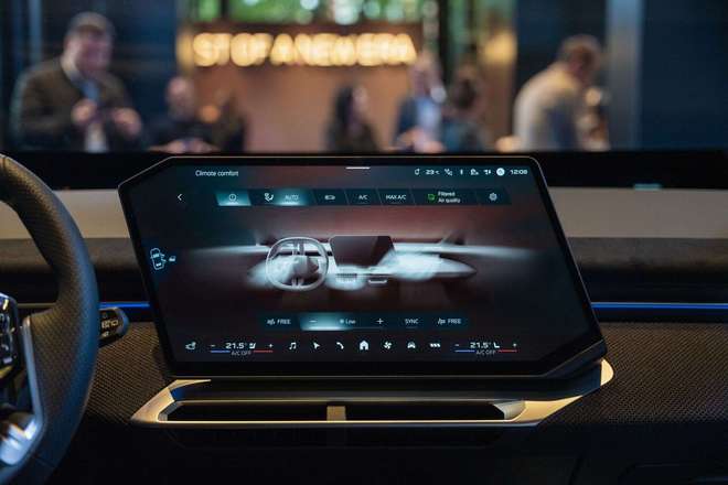 内饰方面,宝马取消了传统的数字仪表盘和iDrive旋钮控制器,所有车辆功能几乎都集成在一块17.9英寸的悬浮式中央触控屏中,并运行全新的宝马OperatingSystemX系统。