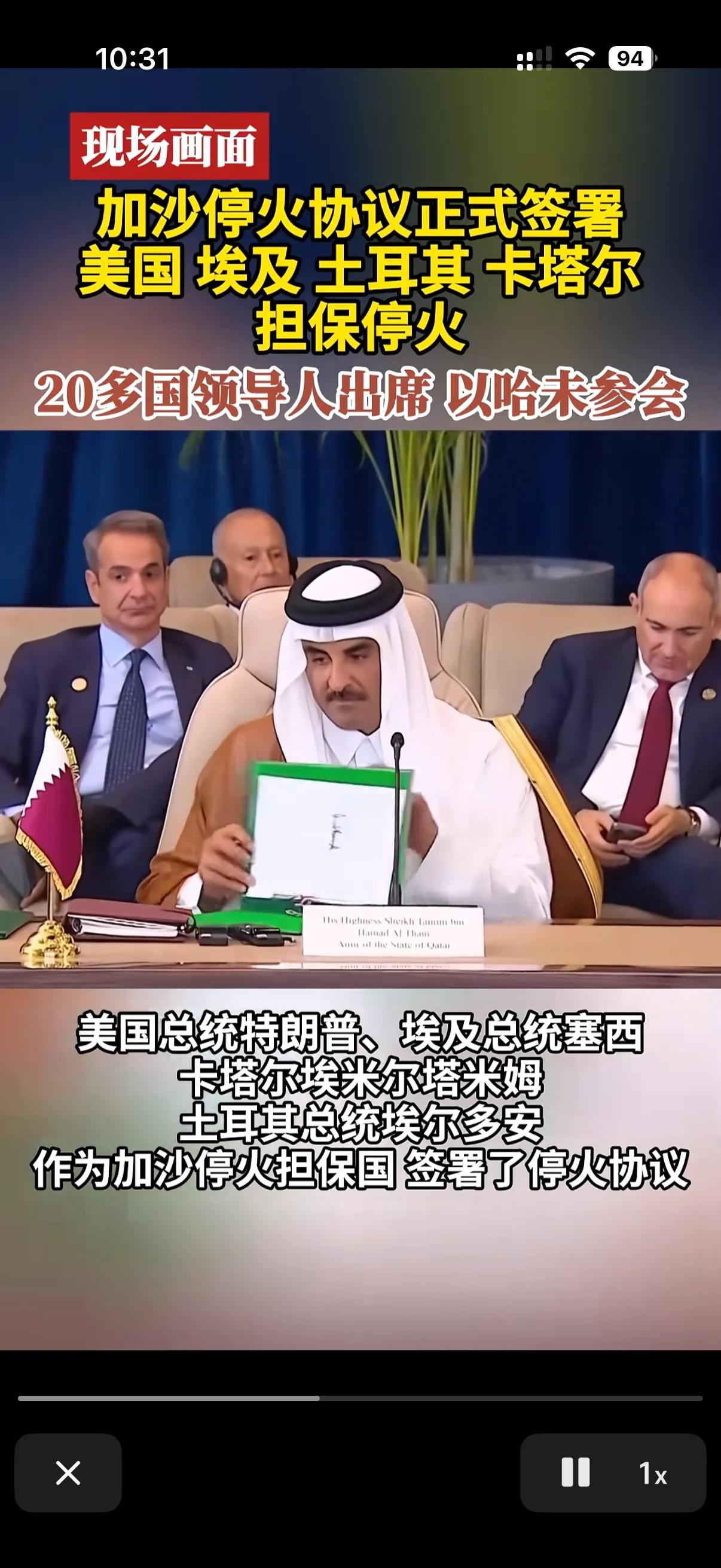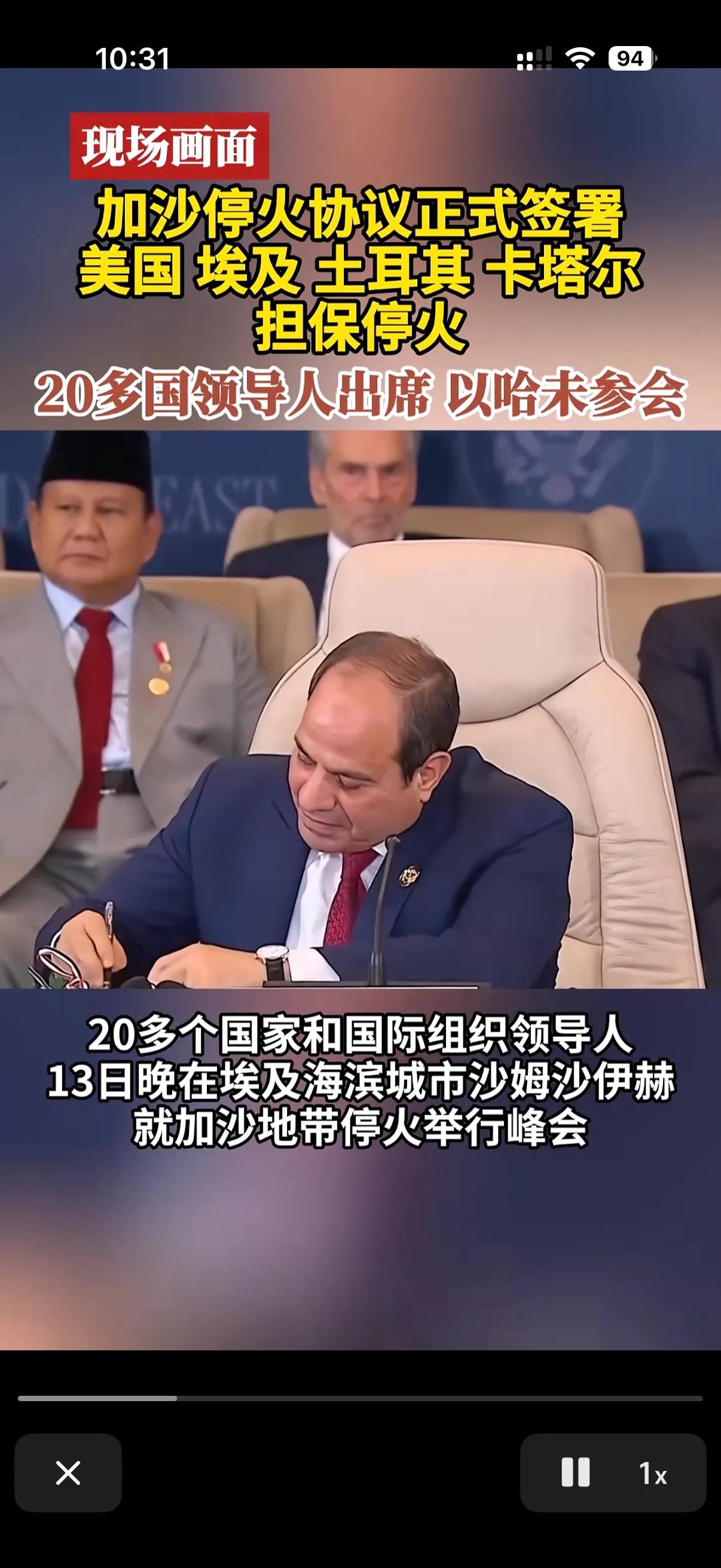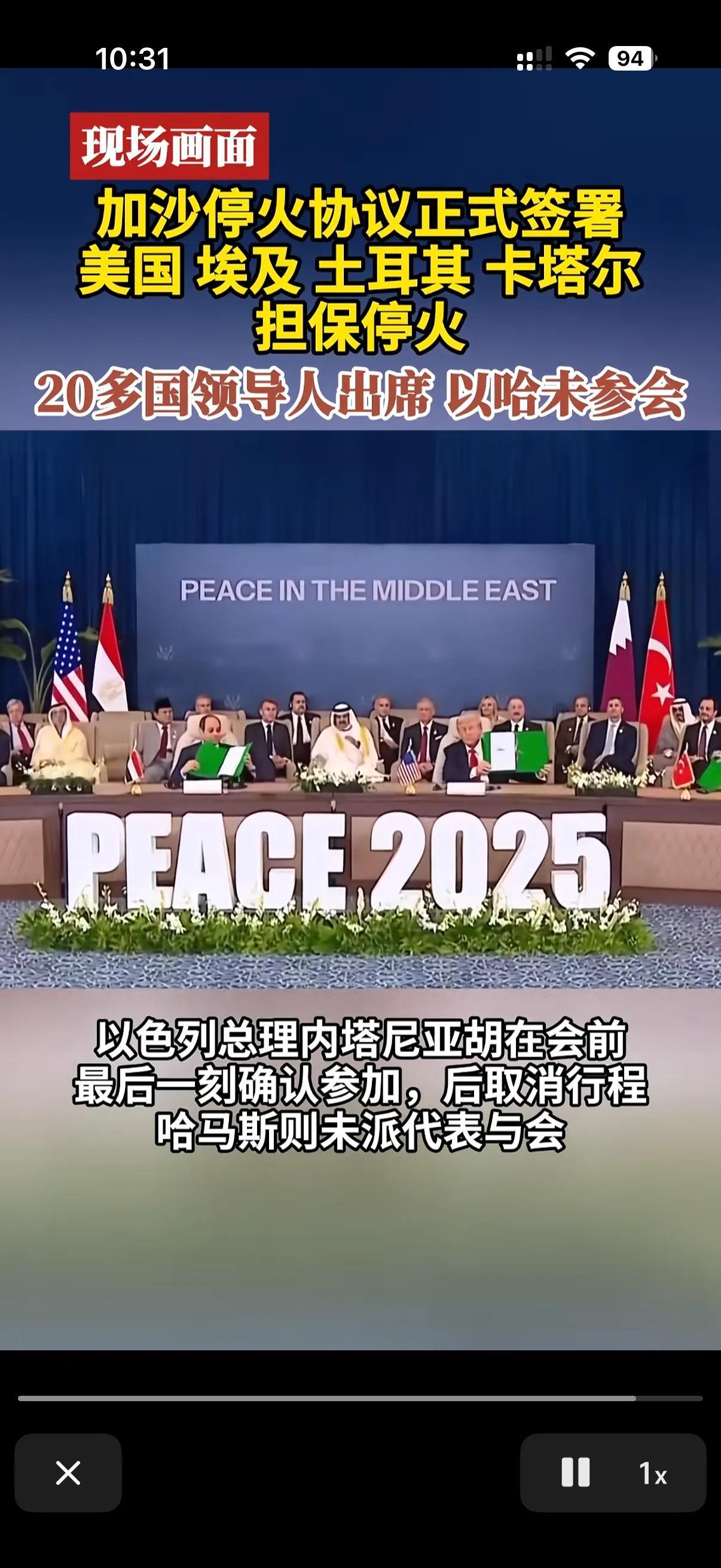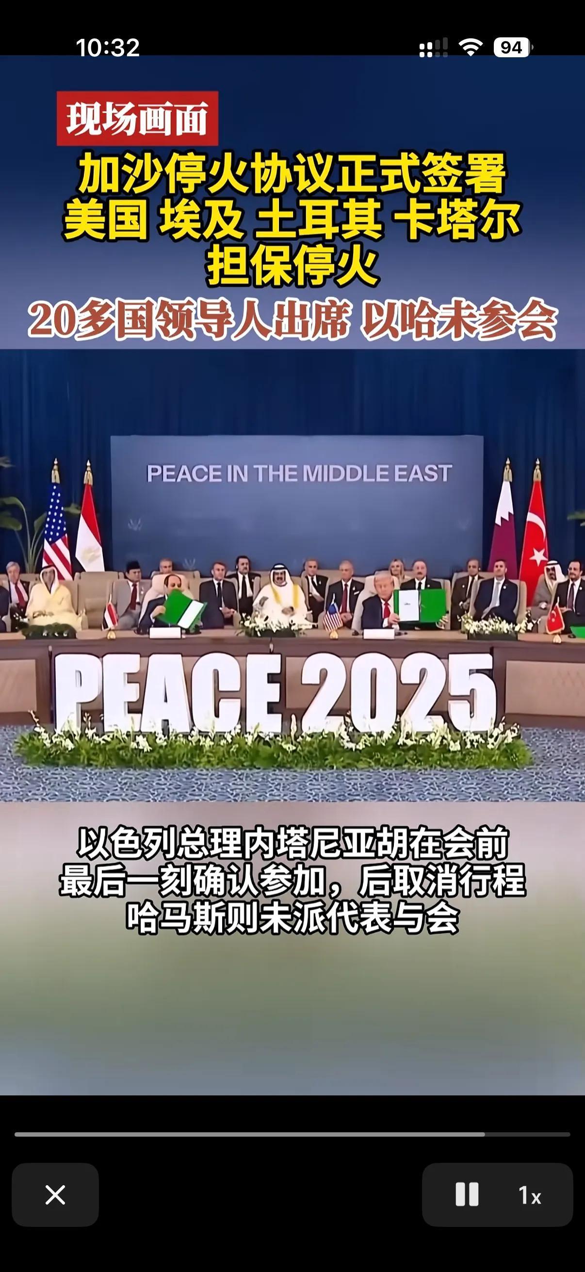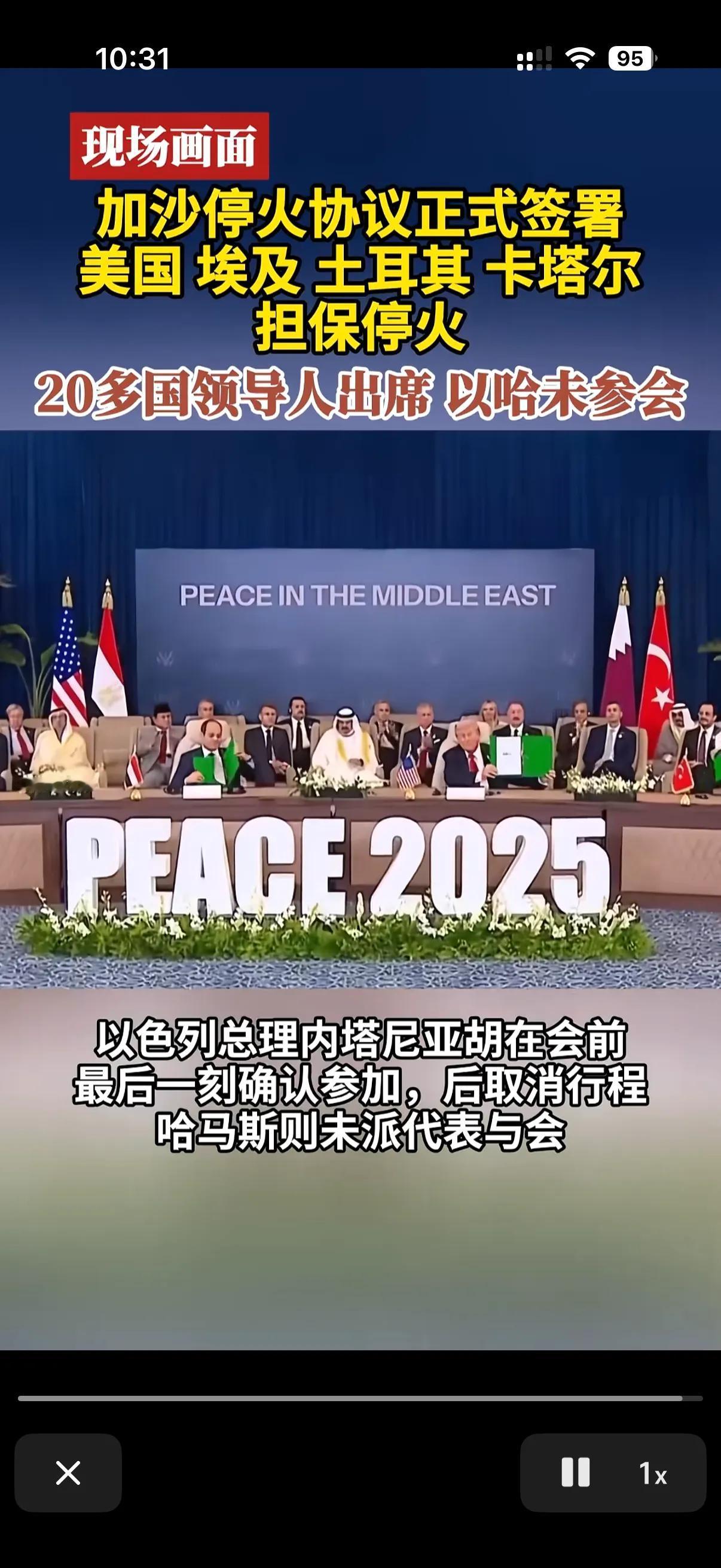 终于正式的签署加沙地带停火协议了! 可以说加沙停火协议现在是举世瞩目了!美国土耳其埃及,卡塔尔担保加沙停火! 但是令人好奇的是,处于交火双方的哈马斯和以色列都没有出现在停火协议签署现场! 要知道这次举行的加沙安全峰会,主要任务就是为了加沙停火协议,作为两个主角都没有出席停火协议的签署现场,那么日后这个停火协议有效性可就值得考虑了,虽然现在由美国和其他中东国家担保,但是说白了,最后的执行起来可还是在以色列和哈马斯了! 原本以色列都确认了参加这次的加沙停火协议签订了,哈马斯是从来都说不参与! 可是在峰会马上要召开的前一刻,以色列也说了我也不参与! 看来现在加沙地带的停火协议虽然签订了,但是曾经的交战双方可都是各怀鬼胎了!只希望着得来不易的和平和停火能够多维持一些时间!给加沙地带的人民多一刻安全!